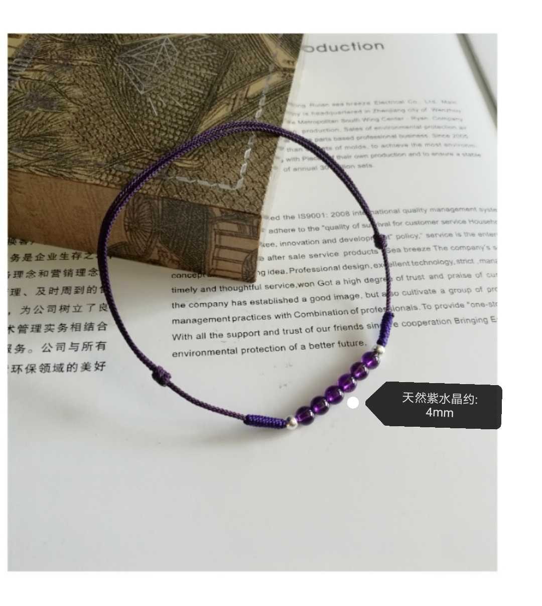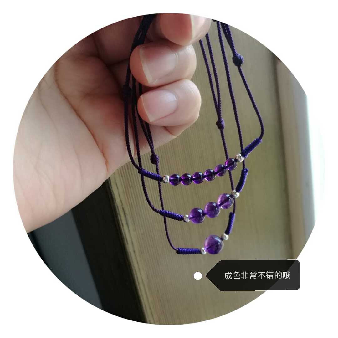 手工编织925纯银珠天然乌拉圭紫水晶手链紫色手绳红绳脚链细款女