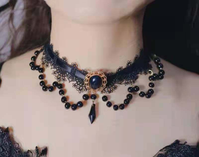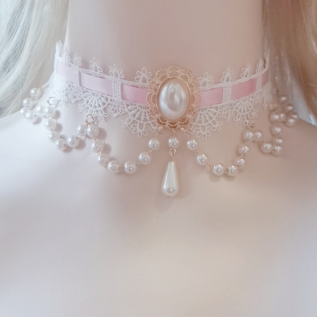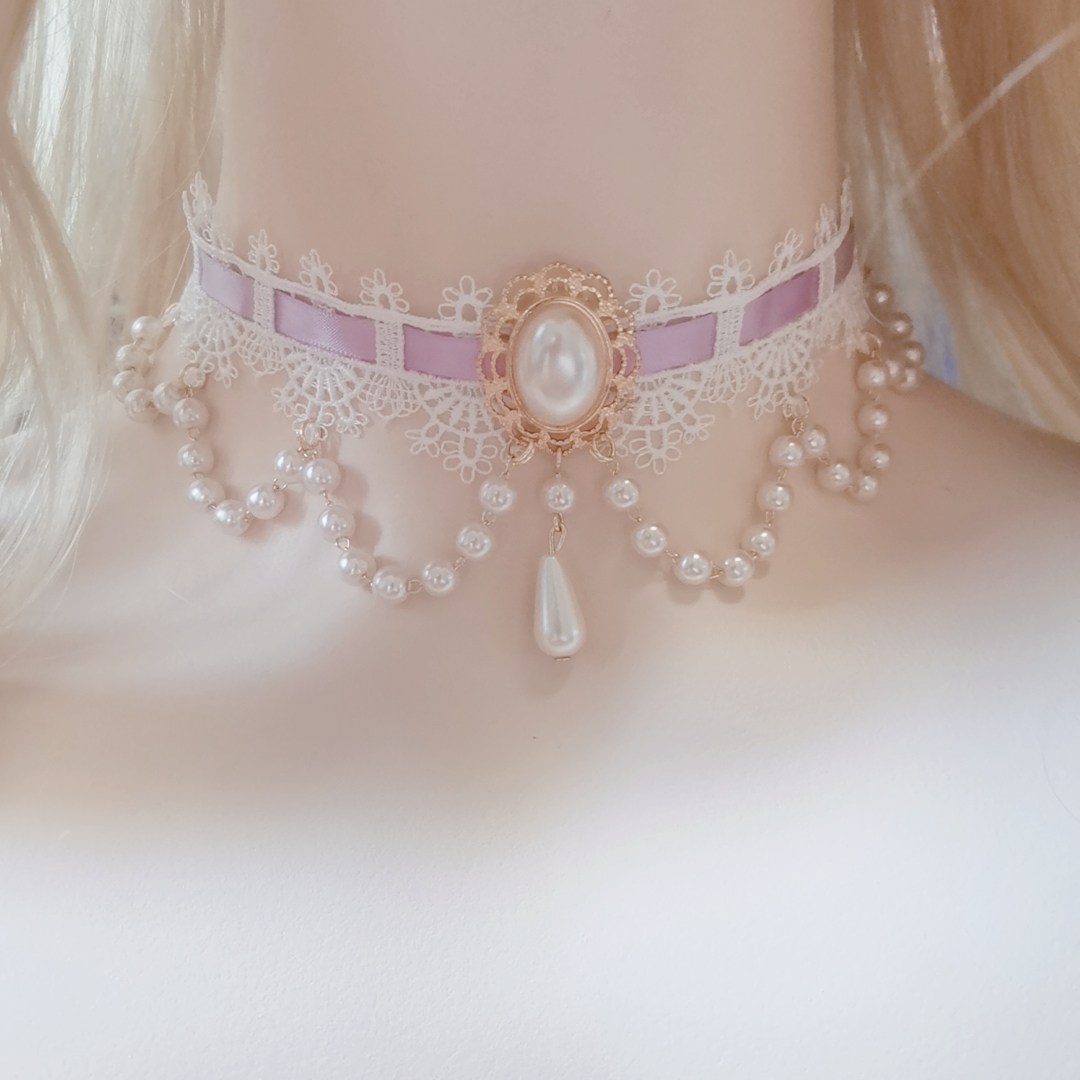 洛丽塔原创手作Lolita锁骨链华丽白色珍珠项链复古欧式宫廷可改色