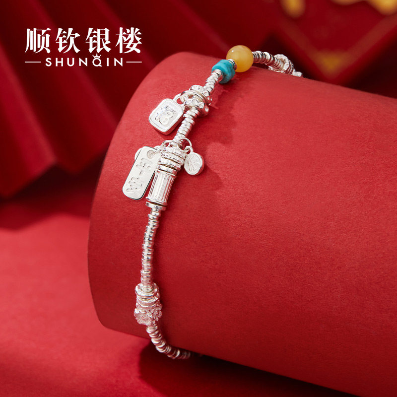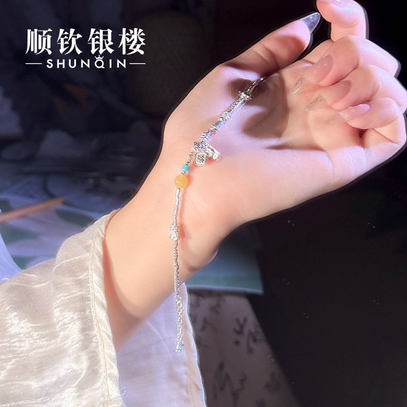 顺钦银楼S925银夏花手链设计感新中式好运祥瑞招财纳福古风配饰