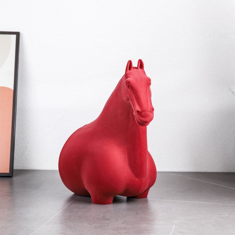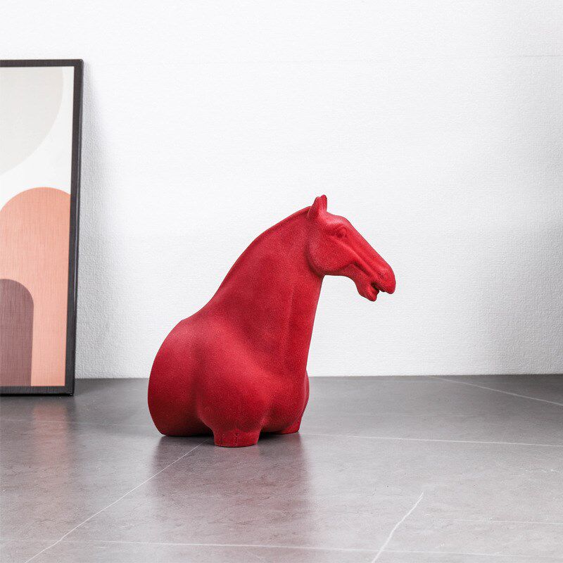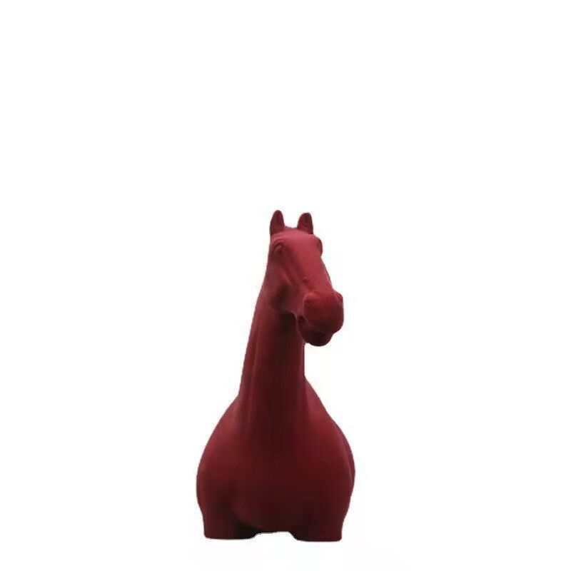 现代极简植绒半身红色马摆件样板C房酒店家居客厅桌面摆放软装饰