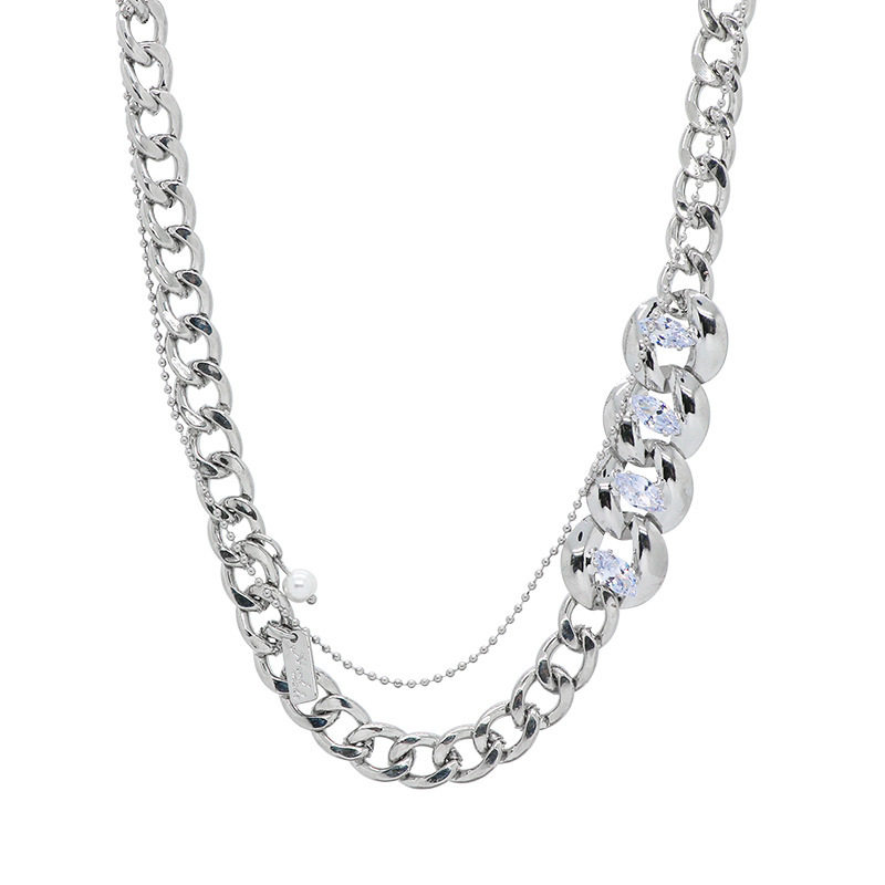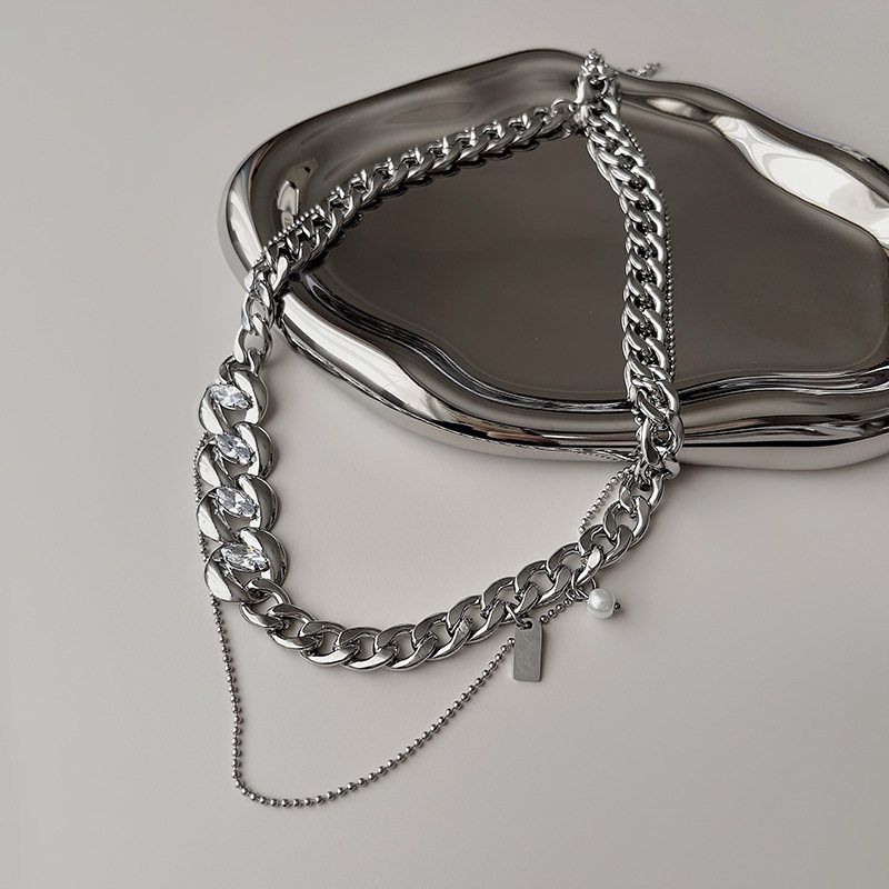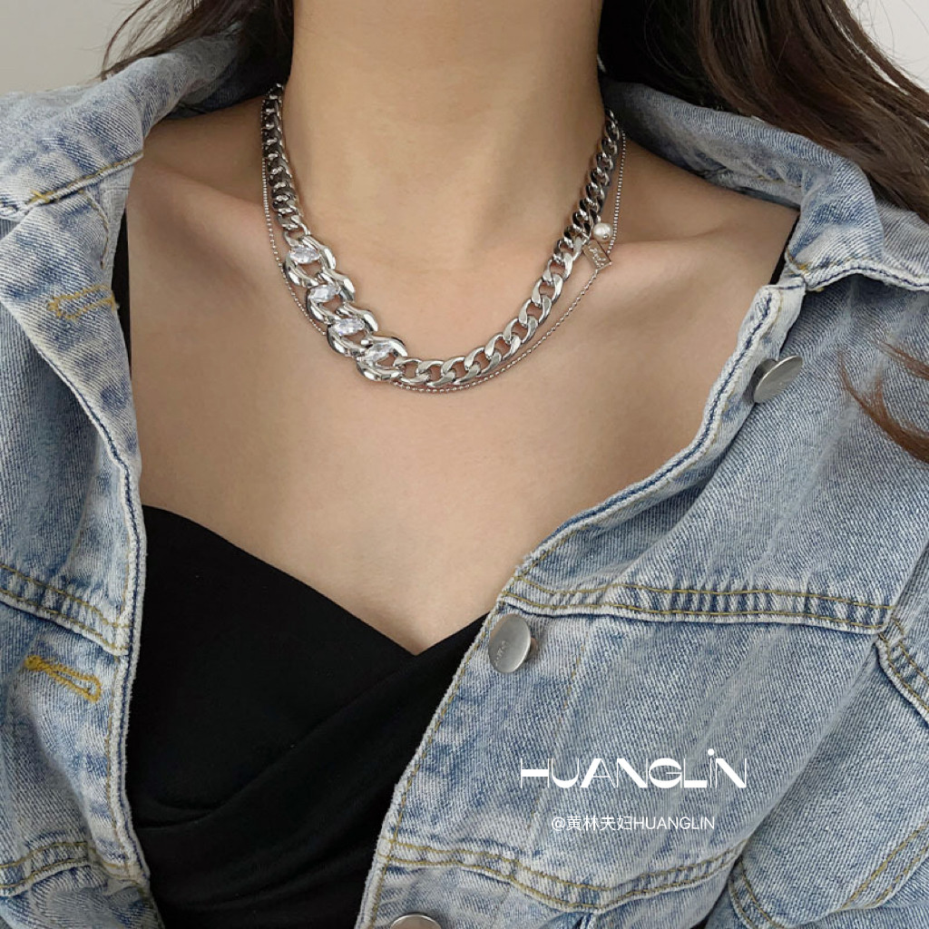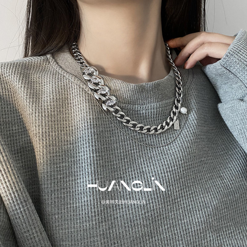 HUANGLIN 镶钻古巴项链女ins冷淡风嘻哈甜酷辣妹锁骨链钛钢配饰男