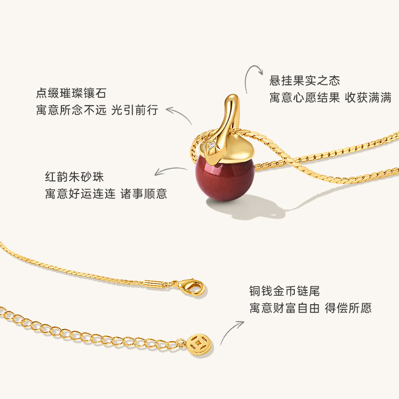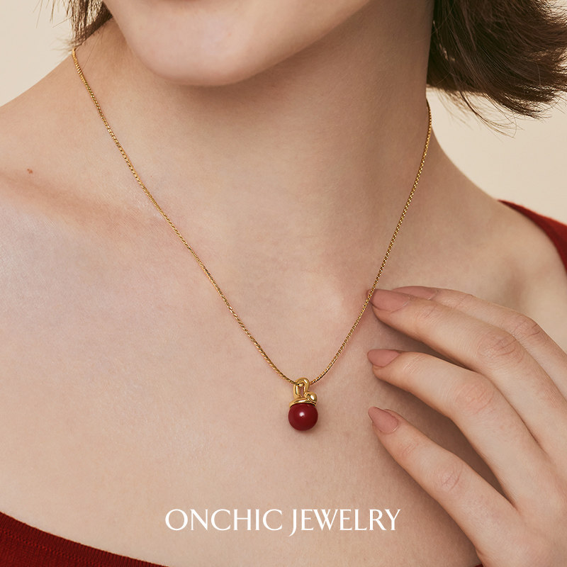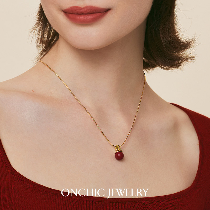 Onchic小愿果朱砂项链女吊坠红色本命年新款锁骨链生日礼物送女友