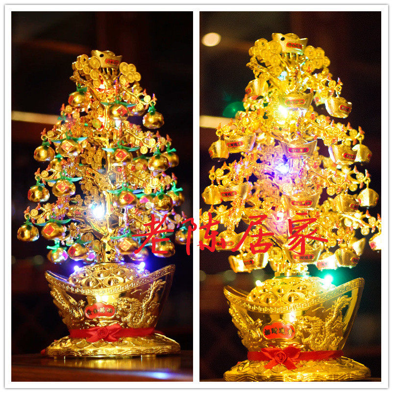 聚宝盆明灯金元宝摆件元宝树带灯光可旋转摇钱树装饰品开业招厂家