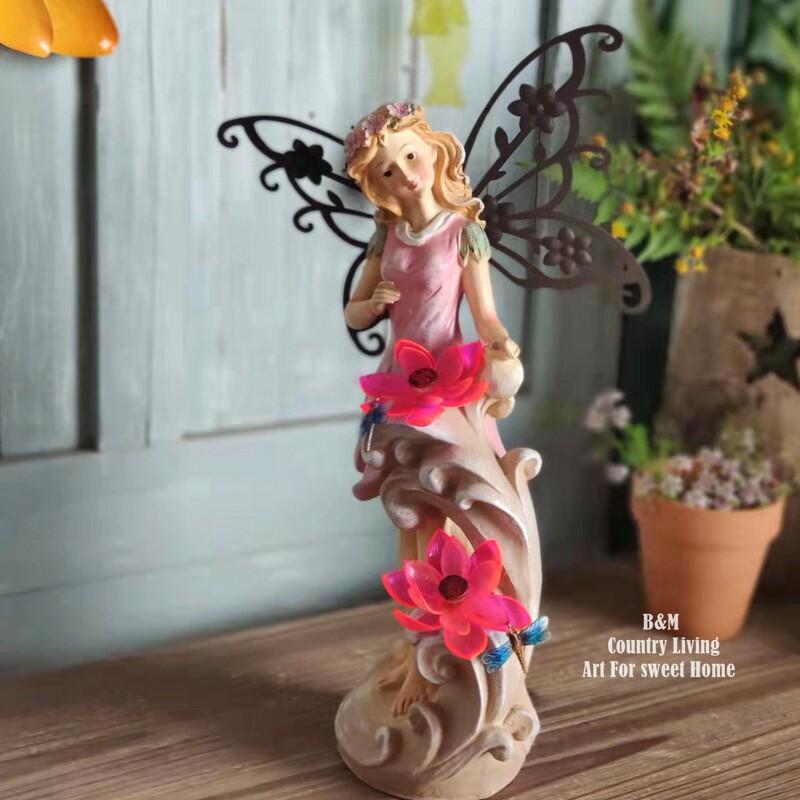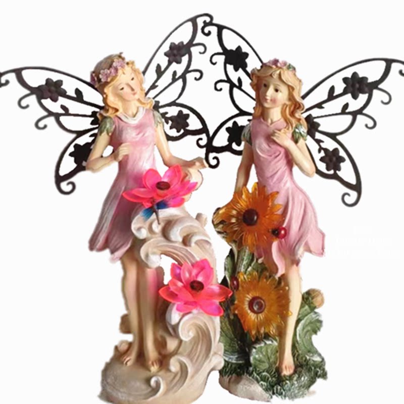 百亩家田园树脂花仙子天使摆件庭院花园阳台装饰品太阳能装饰灯对