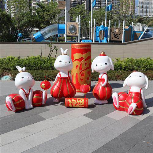 玻璃钢卡通兔子雕塑商业街广场可爱动物网红打卡店美陈装饰大摆件