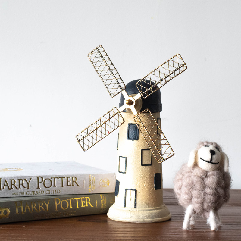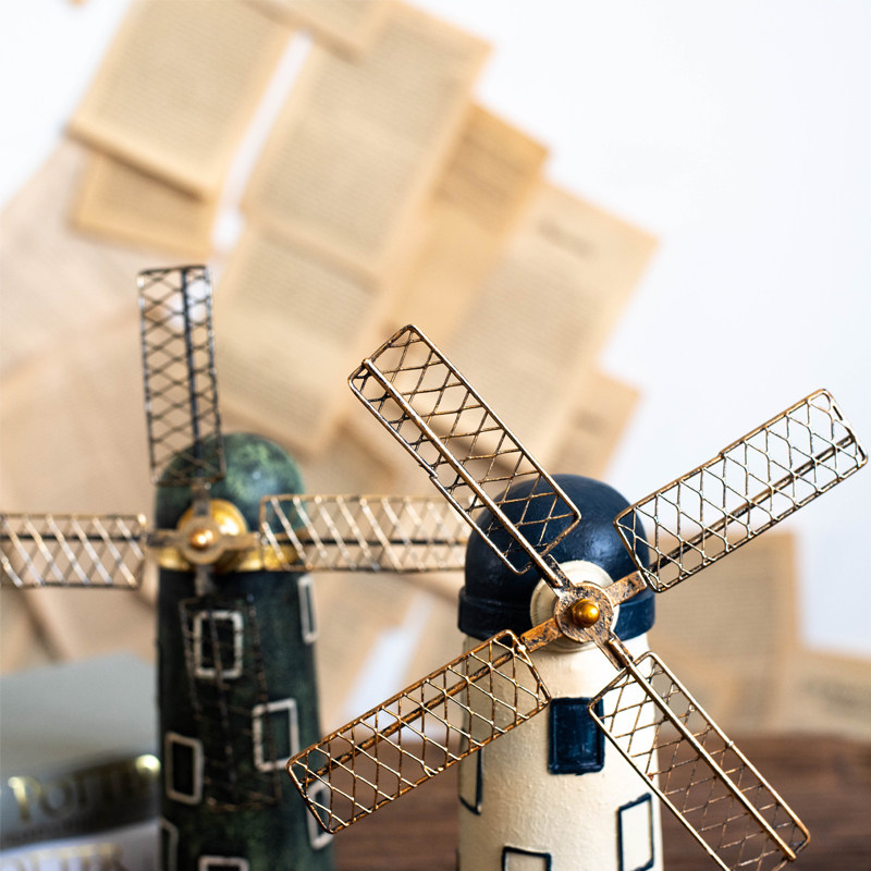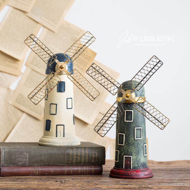 慕空间 复古做旧圆顶色荷兰风车 咖啡厅工业风个性装饰品