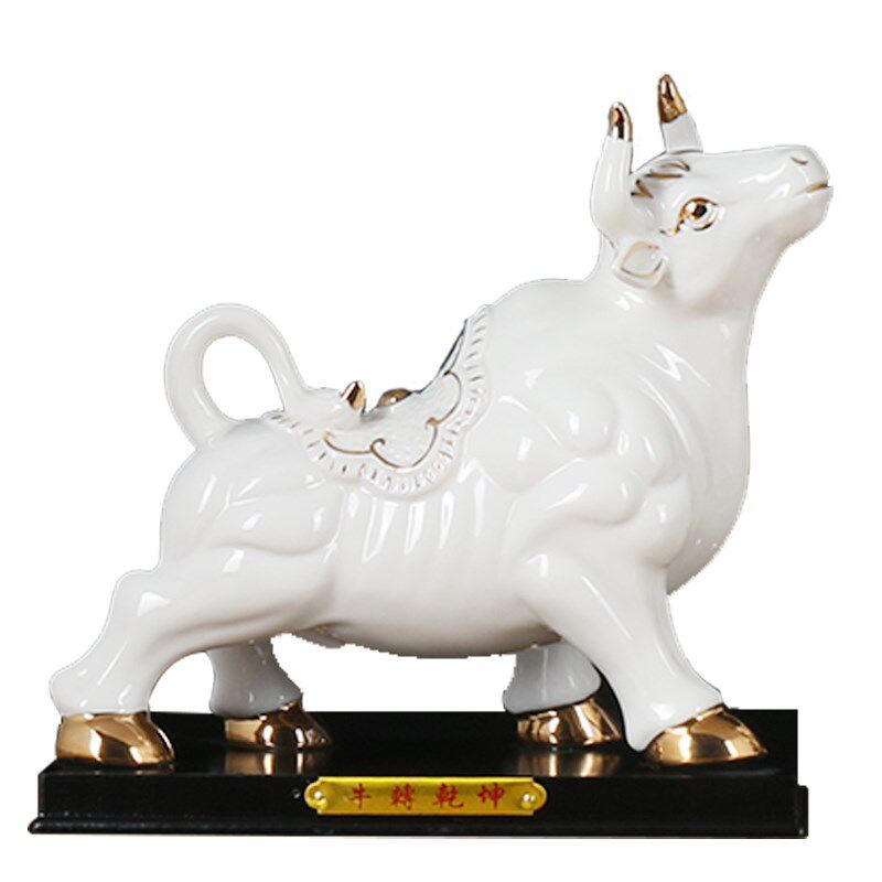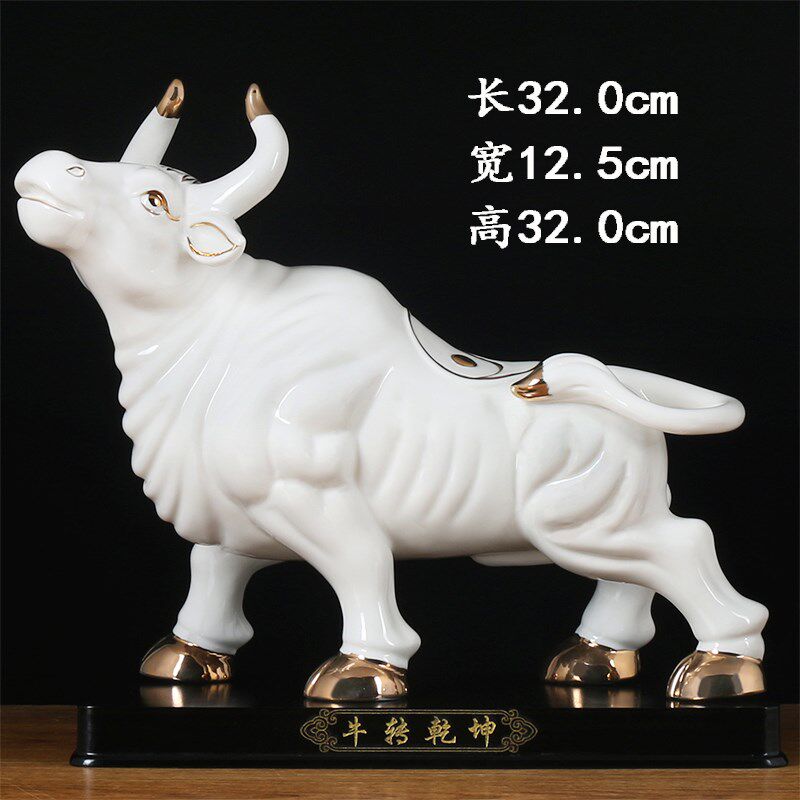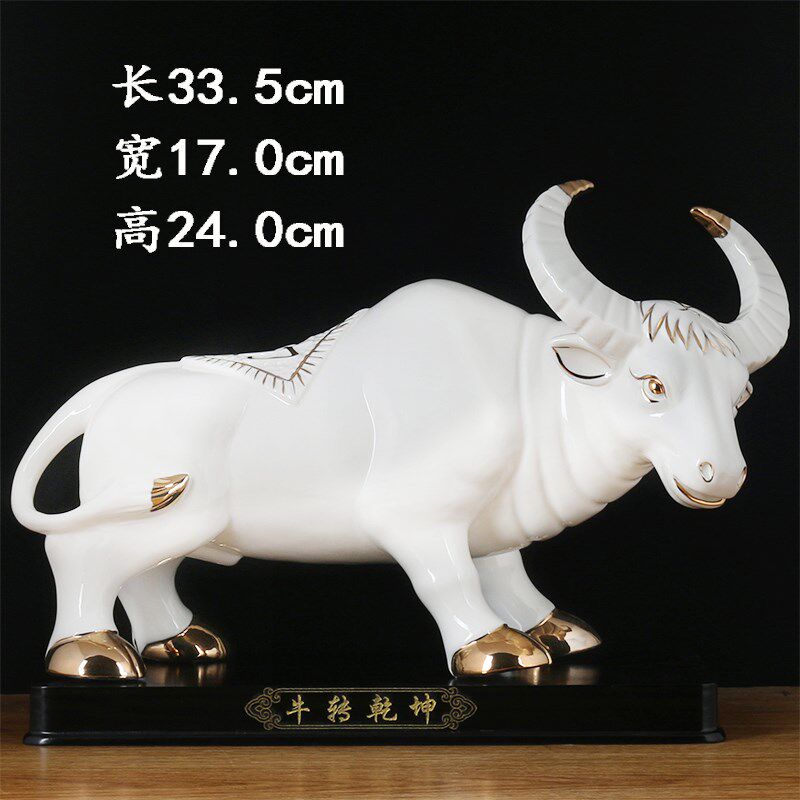 白色陶瓷水牛摆件招财镇宅吉祥物生肖瓷器牛气冲天家居摆设工艺品