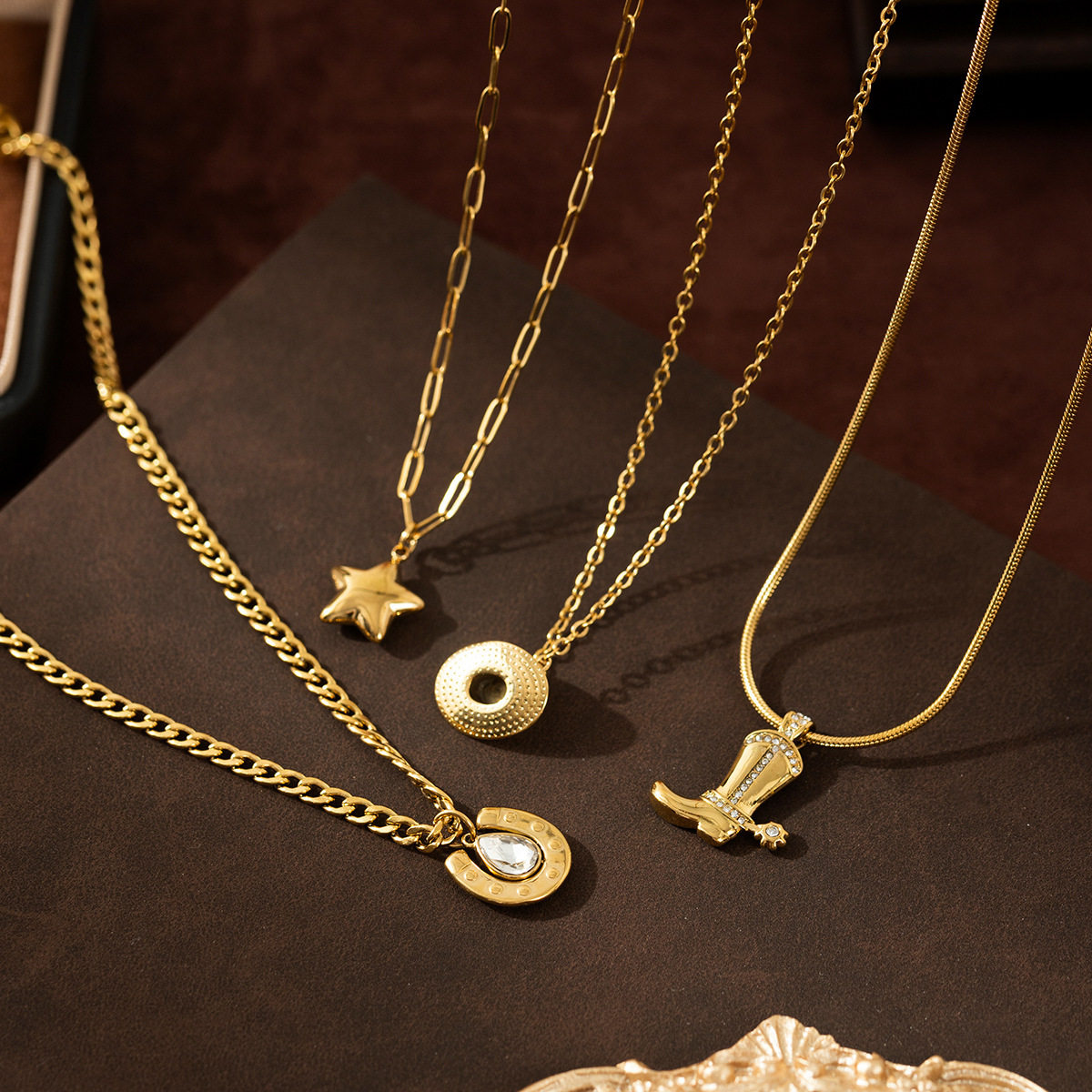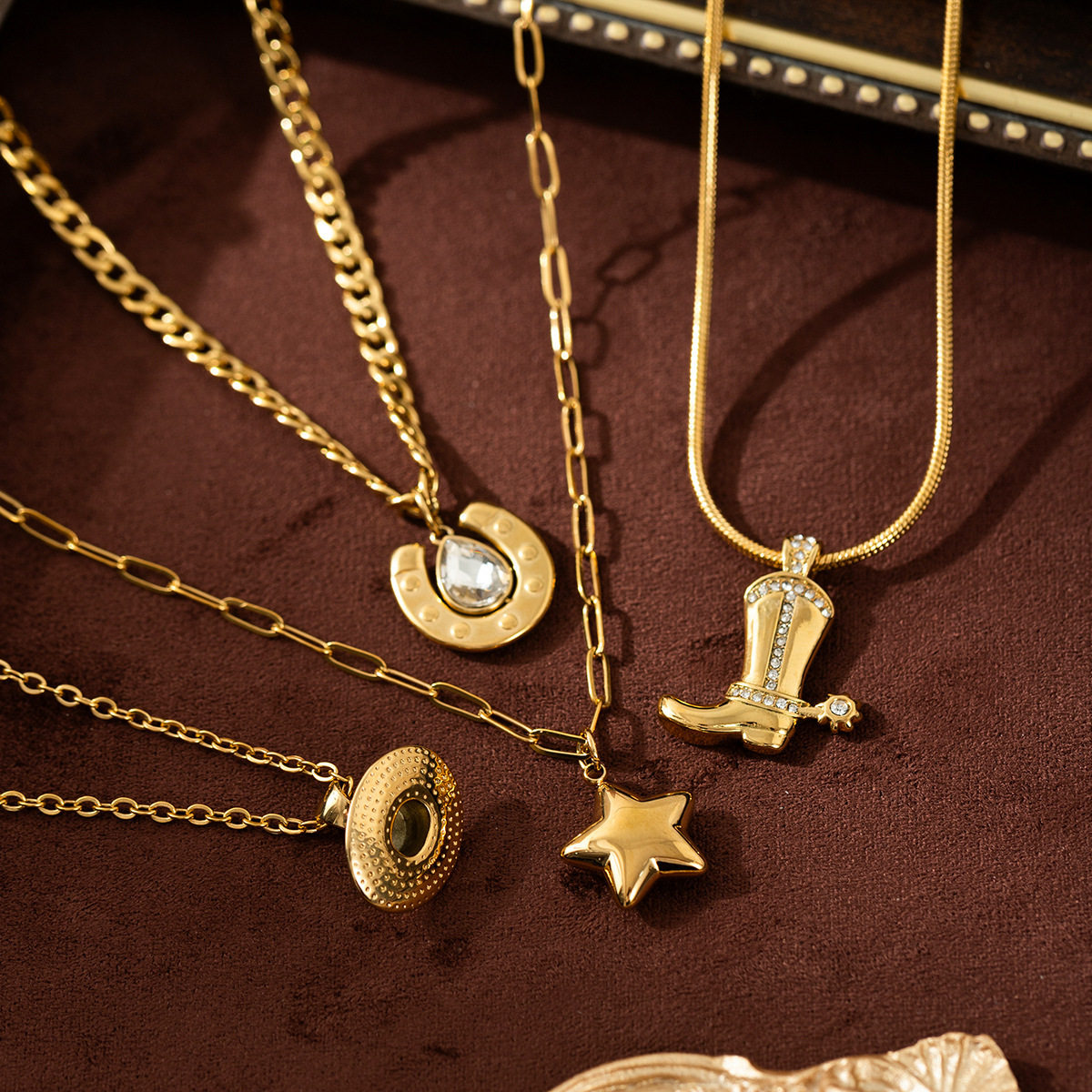 英国george melis欧美文艺复古牛仔靴帽马蹄星星项链真空电镀18k