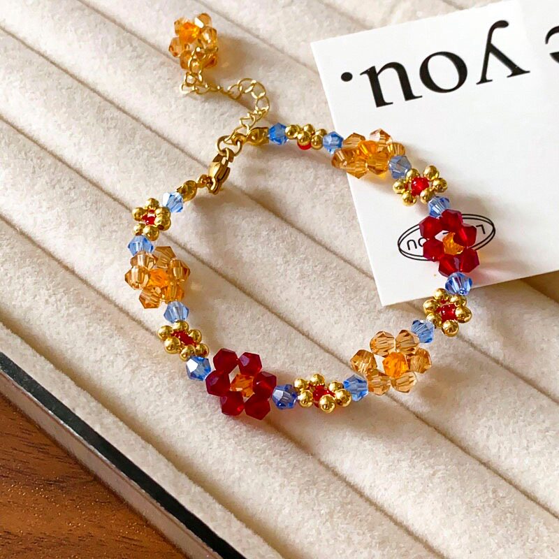 彩色多巴胺串珠编织花朵项链甜美森系小清新锁骨链时尚百搭颈链女