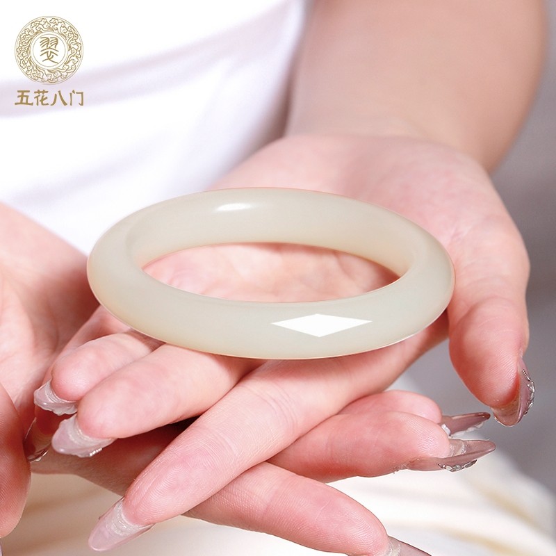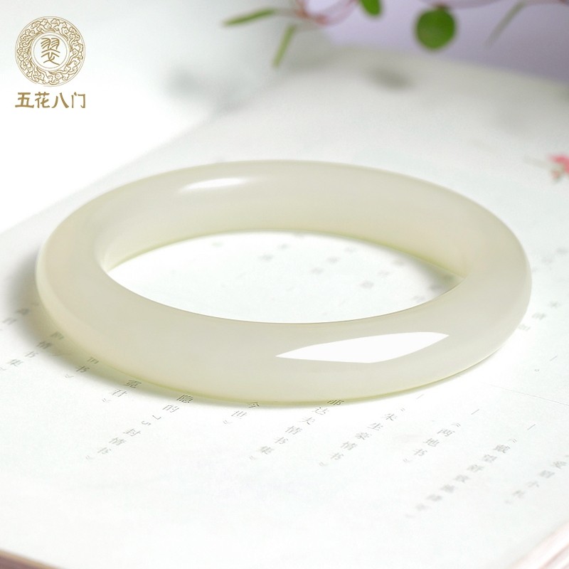 五花八门天然正品和田玉青白玉手镯女士真正青海料晴水玉镯子女款