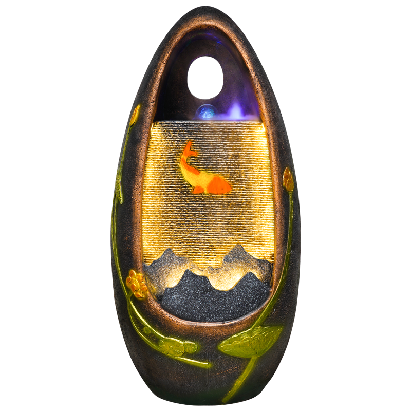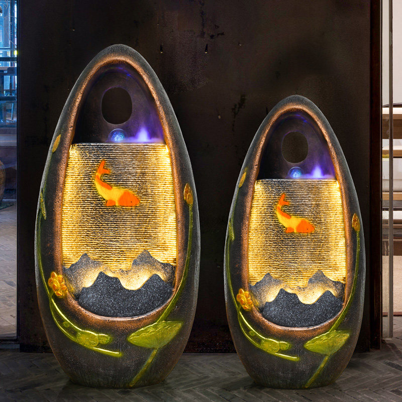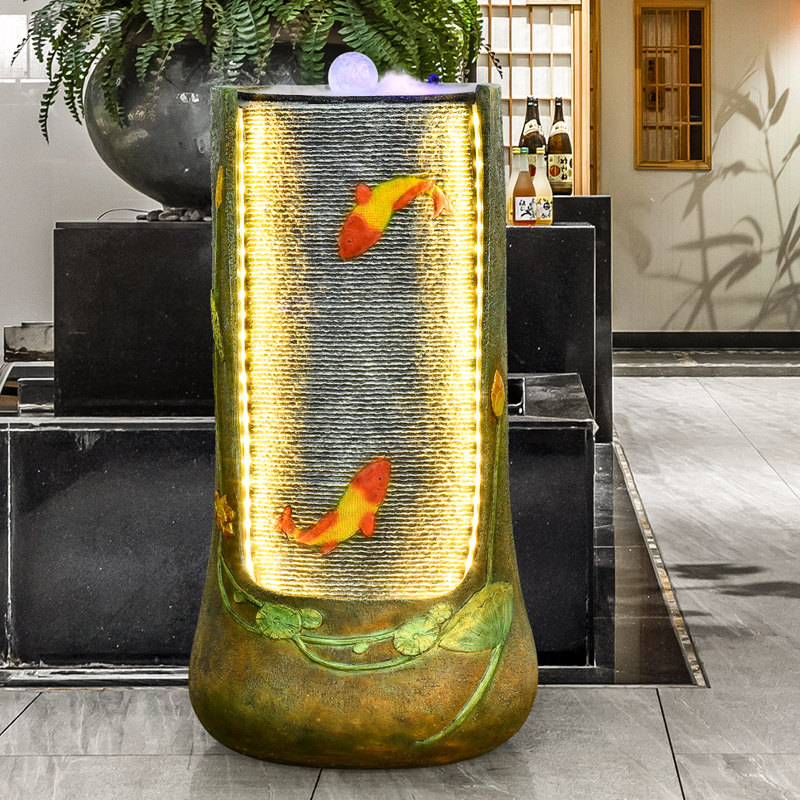 中式荷叶鱼儿灯光水幕装饰景观喷泉招财客厅开业送礼流水摆件