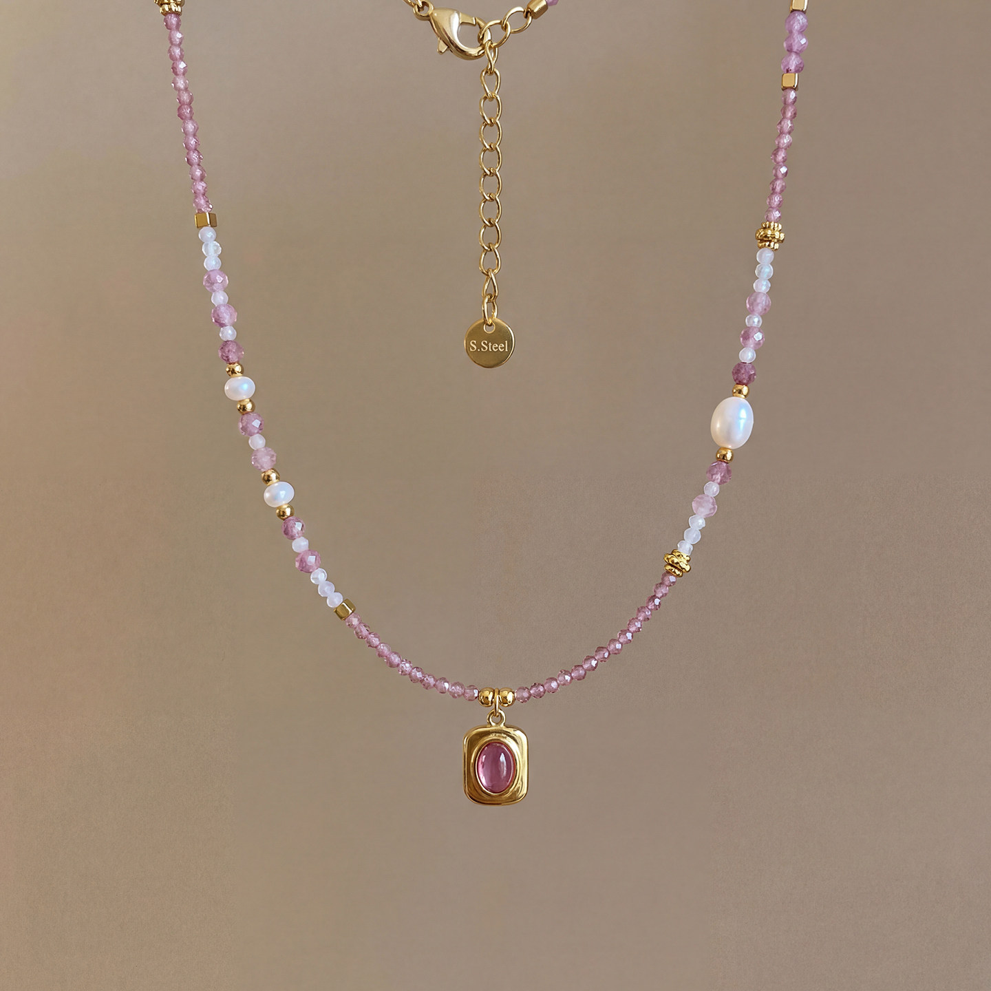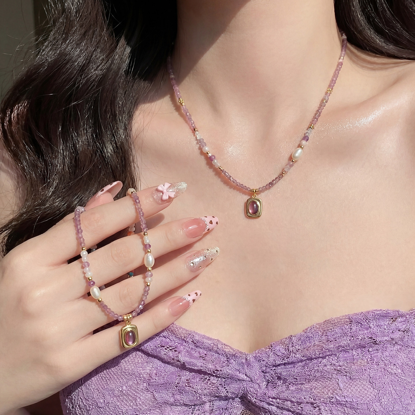 紫色天然石吊坠串珠项链女2026新款高级感轻奢小众锁骨链颈链配饰