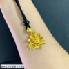 越南沙金莲花项链女款古法荷花吊坠黄金色毛衣链黑色编织绳不掉色