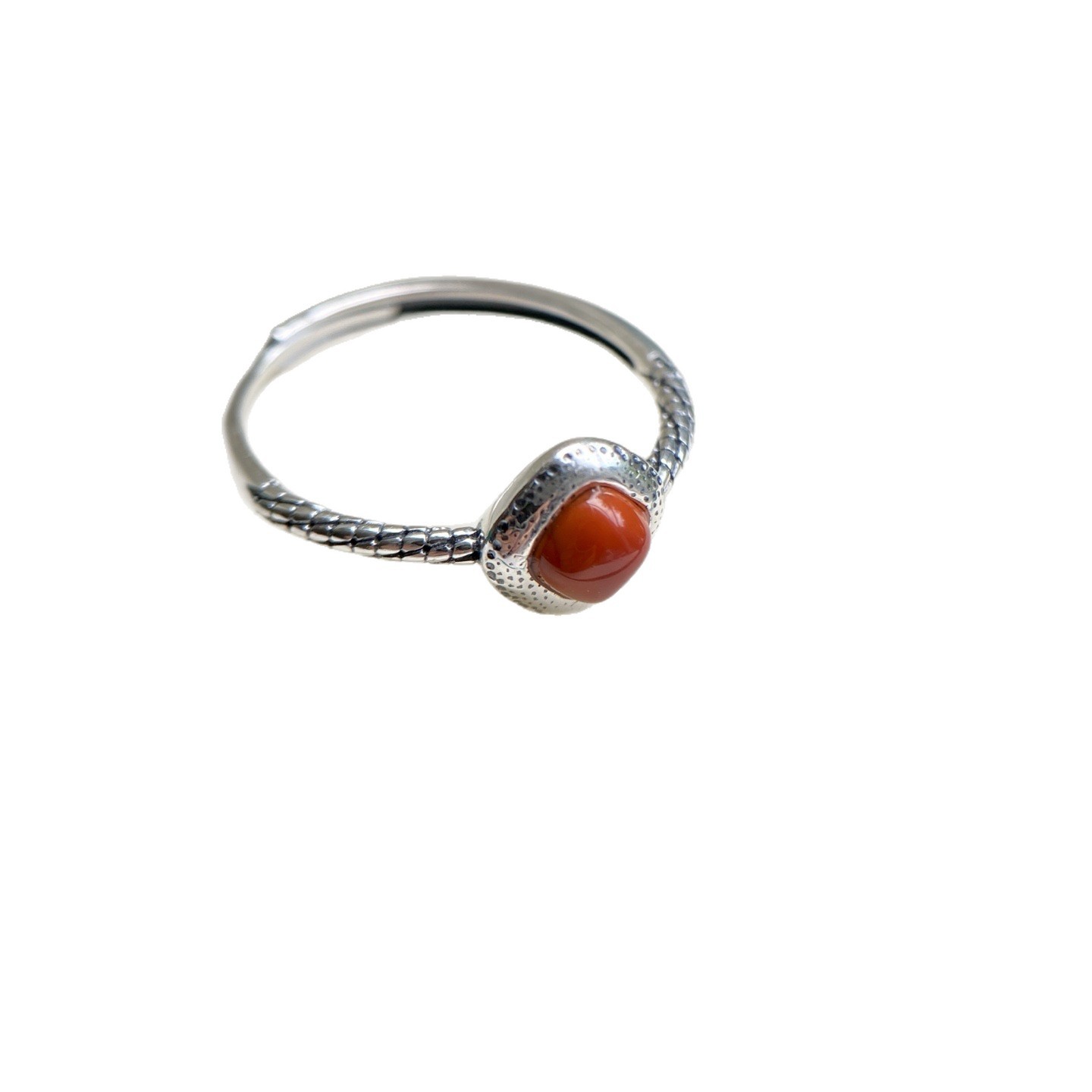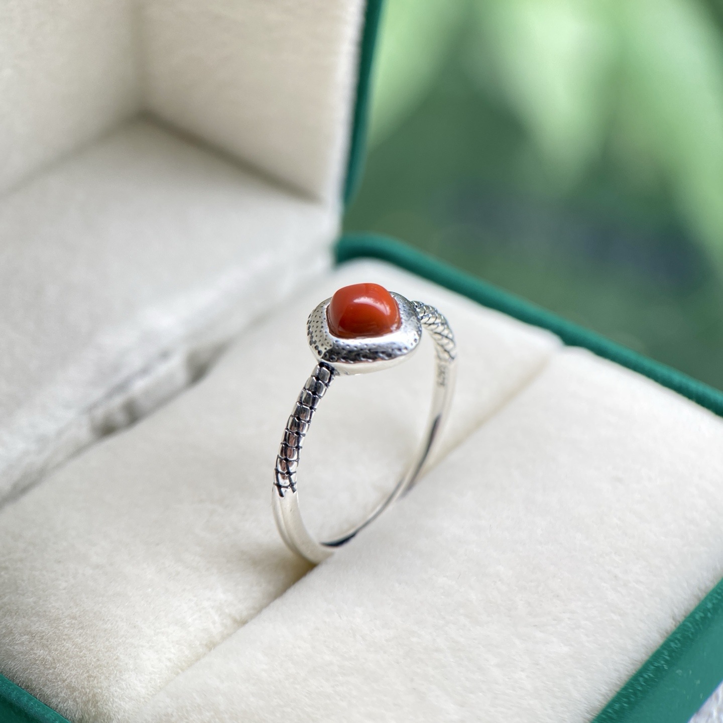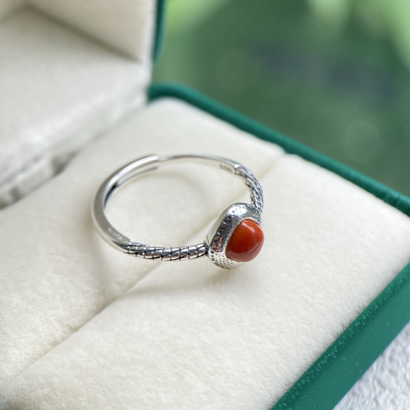 天然川料火焰红南红戒指S925纯银镶嵌原矿真货现货新中式礼物