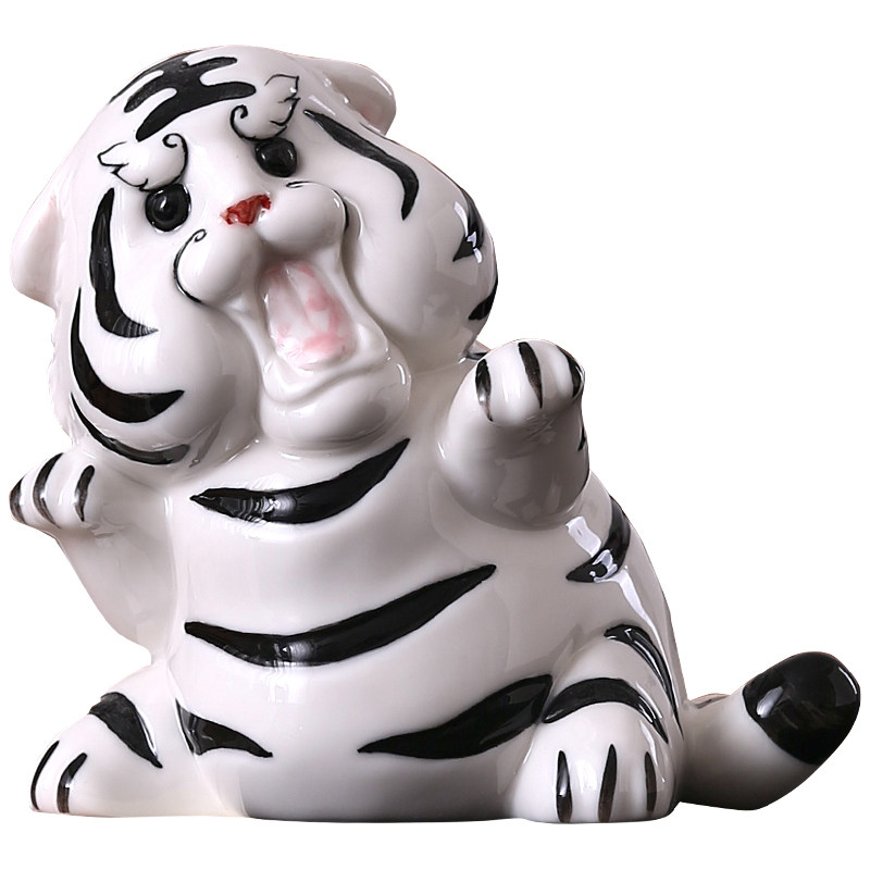 陶瓷老虎摆件招财客厅书房酒柜办公室桌面可爱吉祥动物装饰品摆设