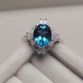 925纯银蓝色绿色宝石男女可调节时尚食指戒指轻奢小众设计高级感