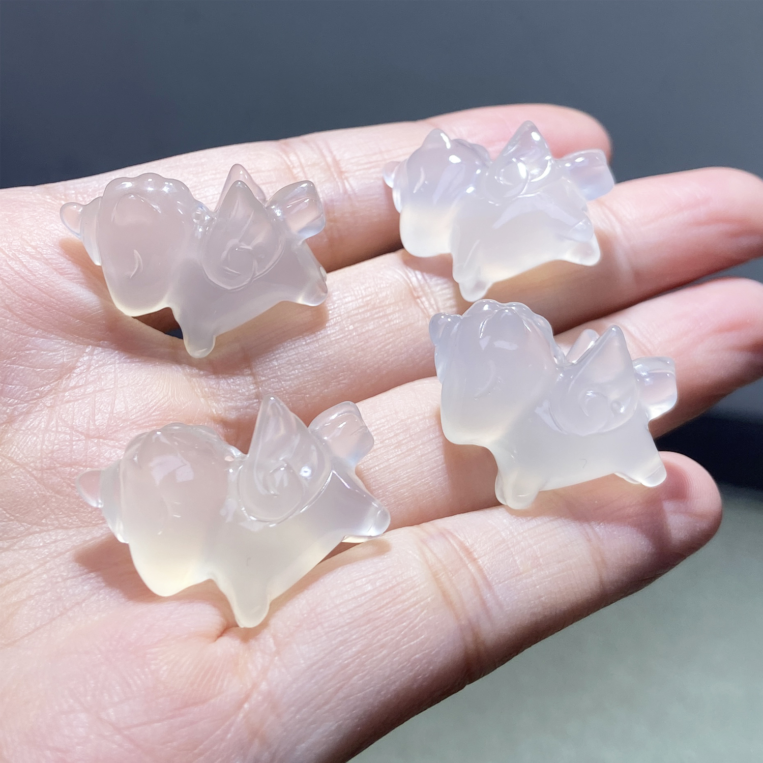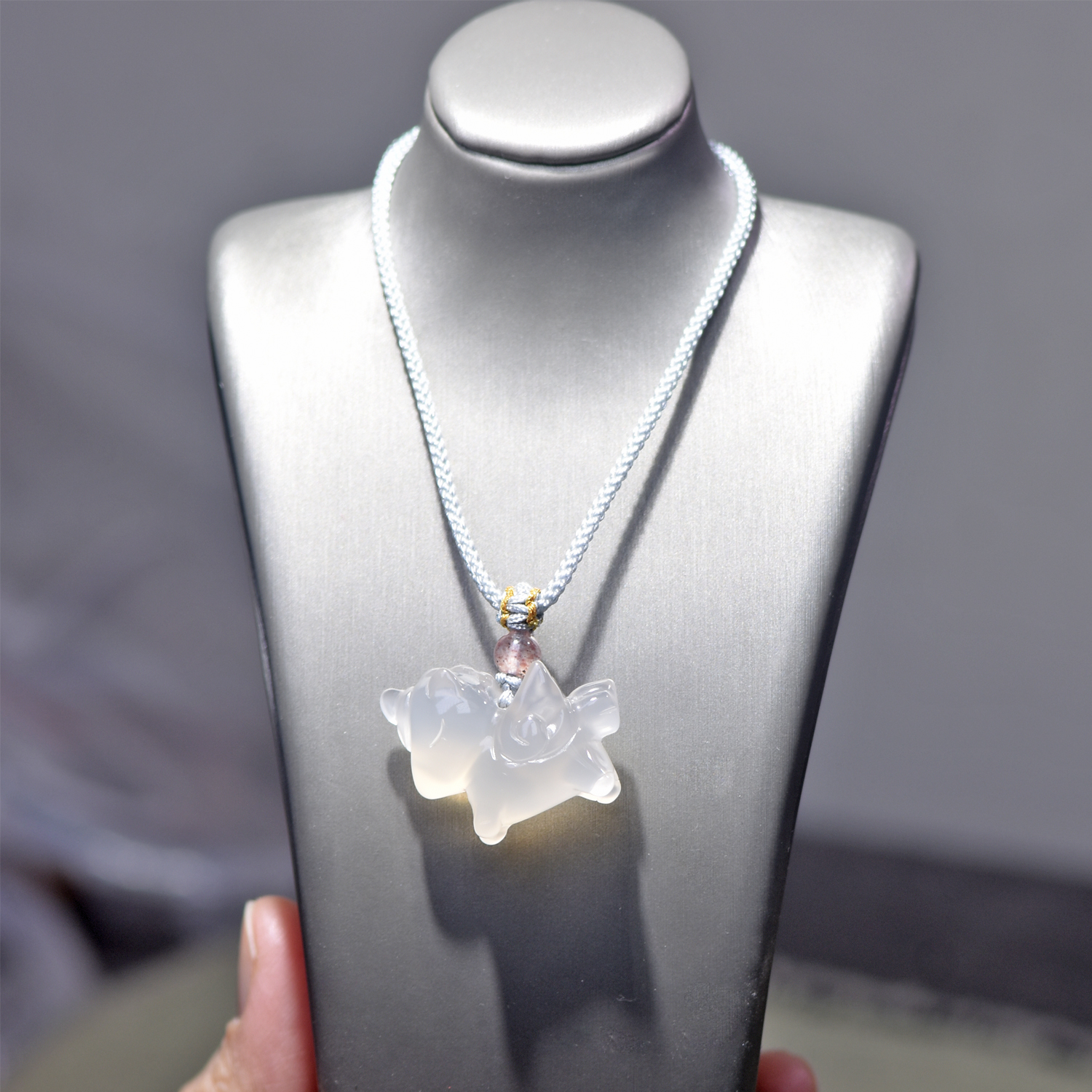 独角兽天然冰透白色玉髓马玉石坠挂件十二生肖属相马项链坠玛瑙坠