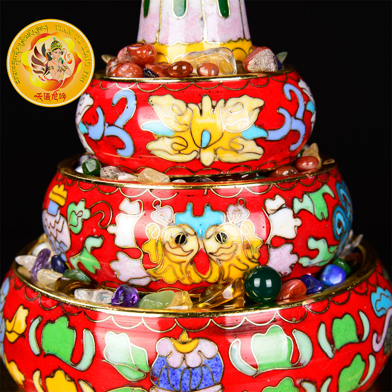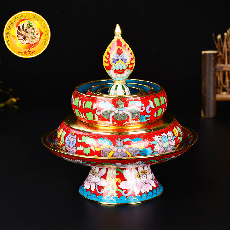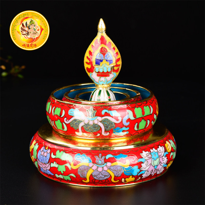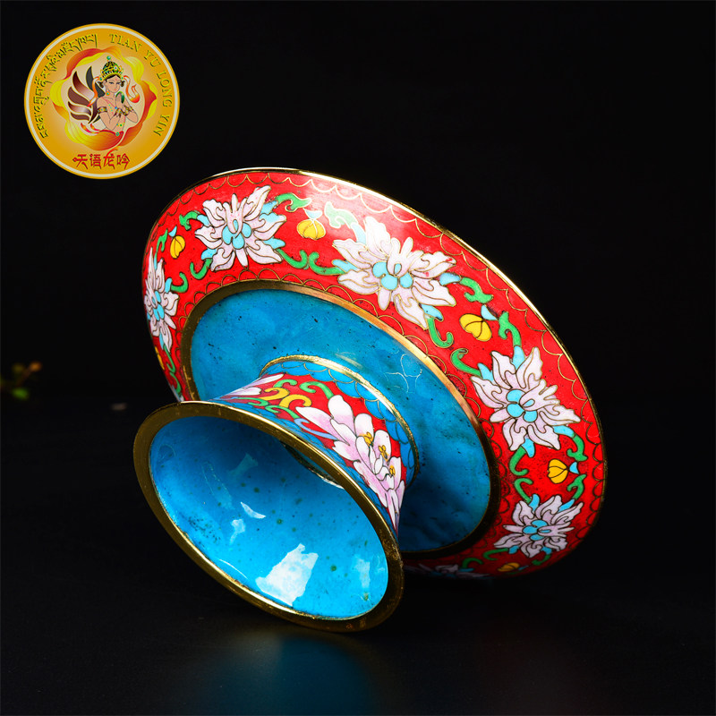 景泰蓝曼扎紫铜胎摆件小号红色曼扎盘带托盘