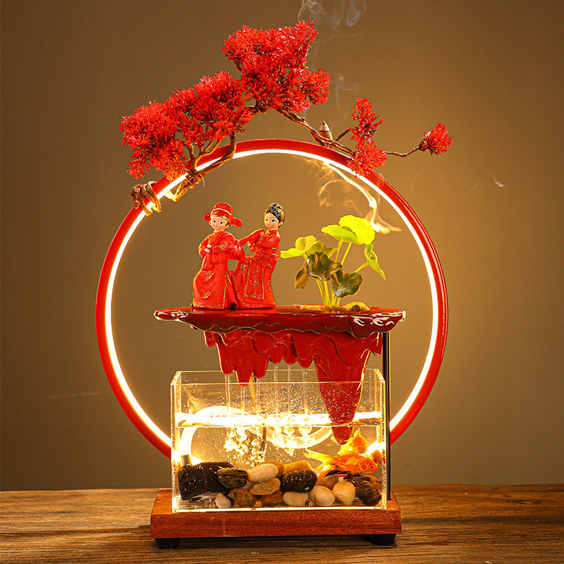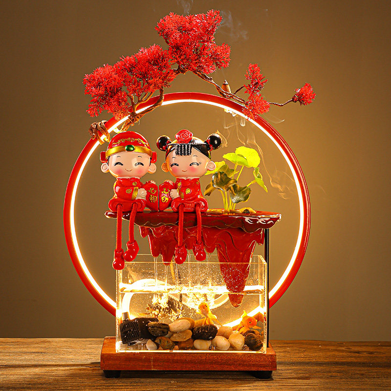 中式创意结婚新婚礼婚房装饰物流水喷泉摆件送闺蜜新人纪念日送礼