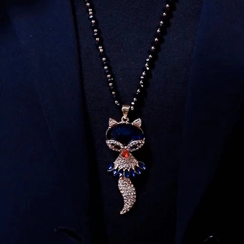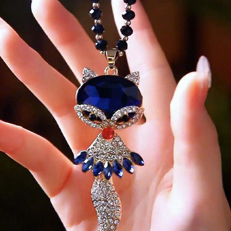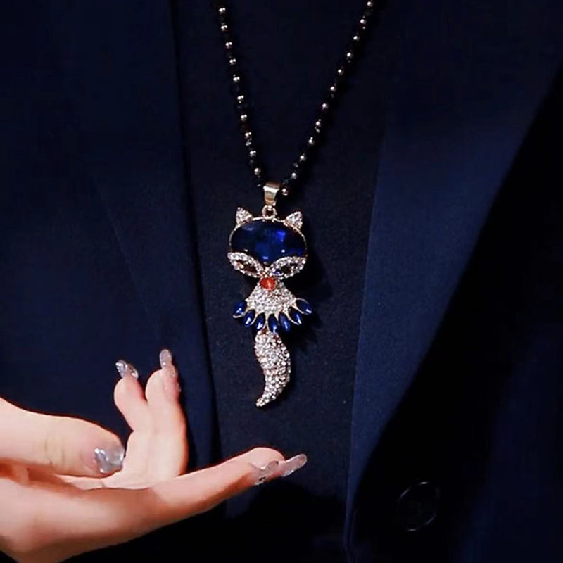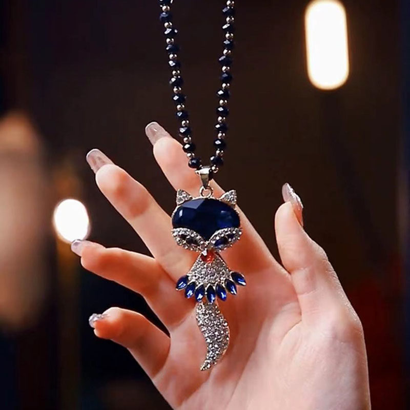 秋冬新款毛衣链水晶狐狸长款项链韩版衣服配饰挂件女简约百搭饰品