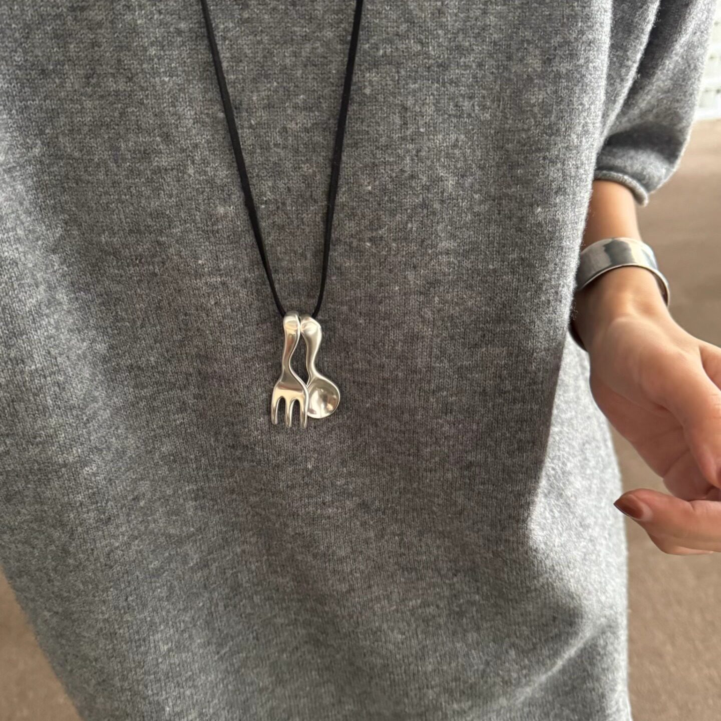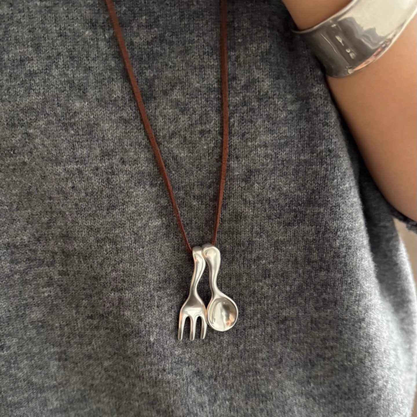 当前位置:首页>商品详情>SAMPAN小众设计勺子叉子项链女轻奢高级感2025新款皮绳毛衣链配饰