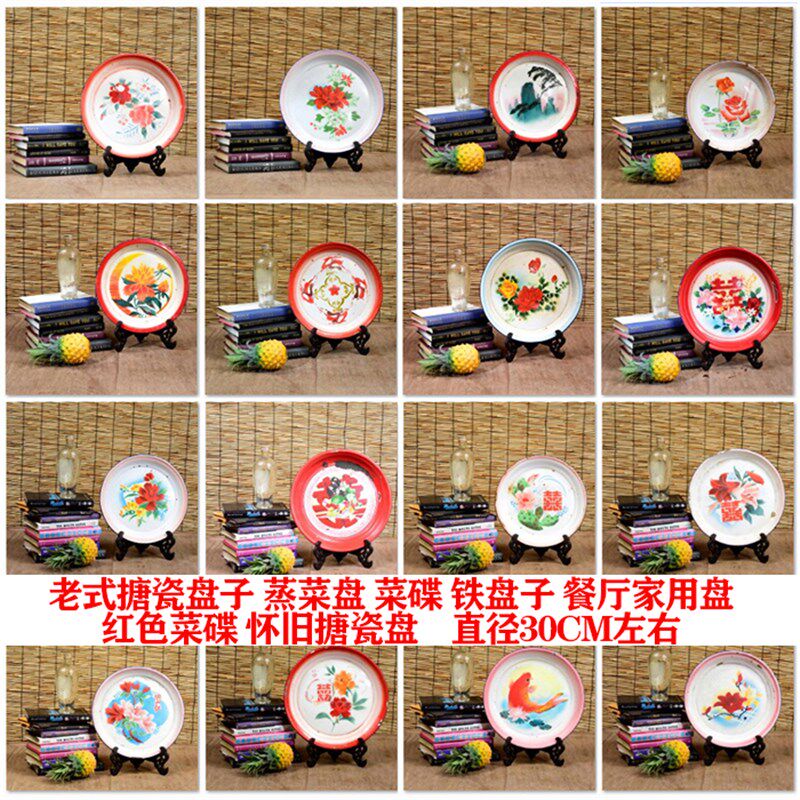 老式搪瓷盘子 蒸菜盘 菜碟 铁盘子餐厅家用盘红色菜碟 怀旧搪瓷盘