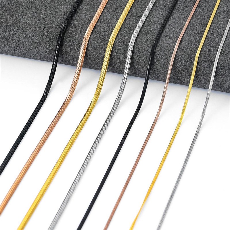 Width 1mm/2mm Flat Chain Gold/Steel/Black/Rose Stainless Ste