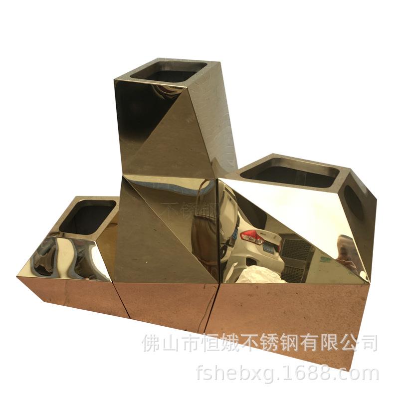 商场银色不锈钢种植盆室内现代装饰花器不锈钢白色金色芭蕉花盆