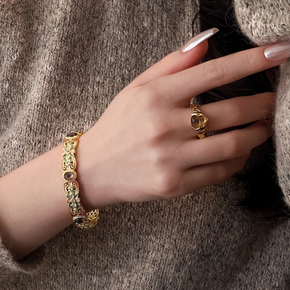 十里间【珐琅葫芦】紫色叠戴蛇形葫芦戒指复古窗花中式开口手镯