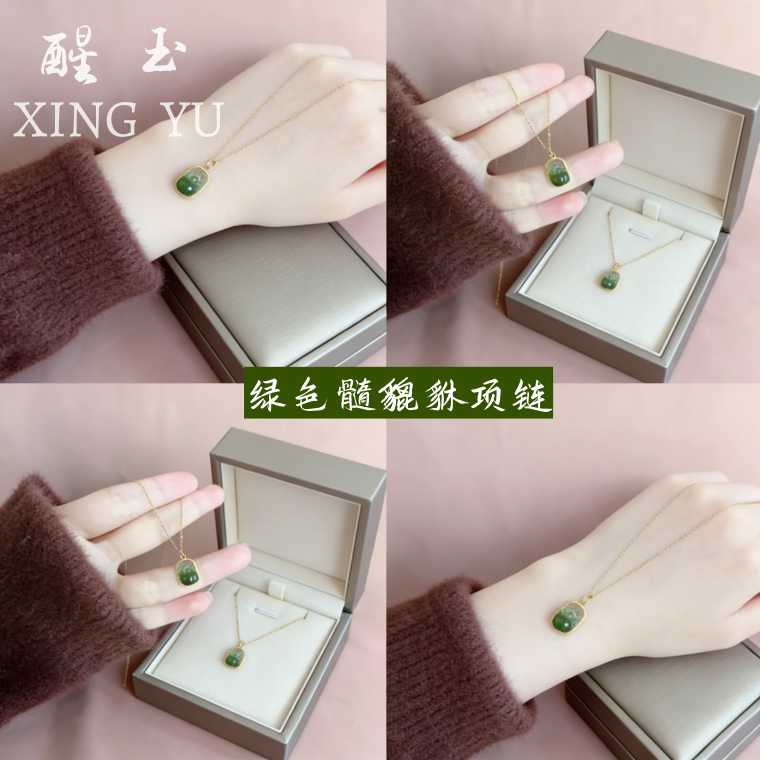 招财绿色髓貔貅吊坠项链女款2026新款爆款高级感轻奢小众锁骨链女