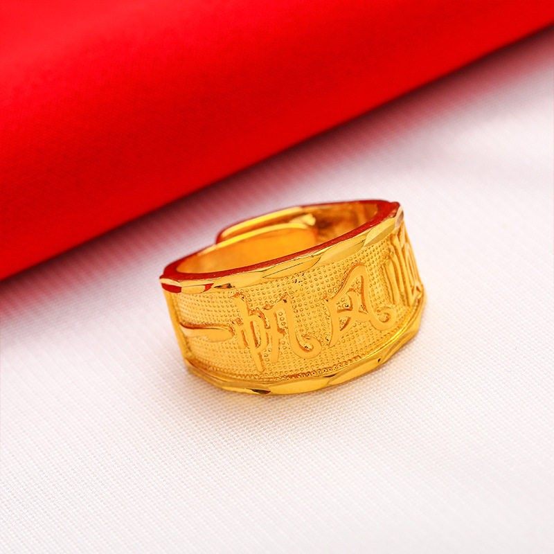 一帆风顺戒指男士加厚开口指环安佳思顺水风高端大气轻奢沙金a85
