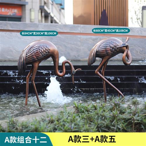 仿铜仙鹤雕塑玻璃钢摆件售楼部庭院水池假山园林景观美陈鸟类装饰