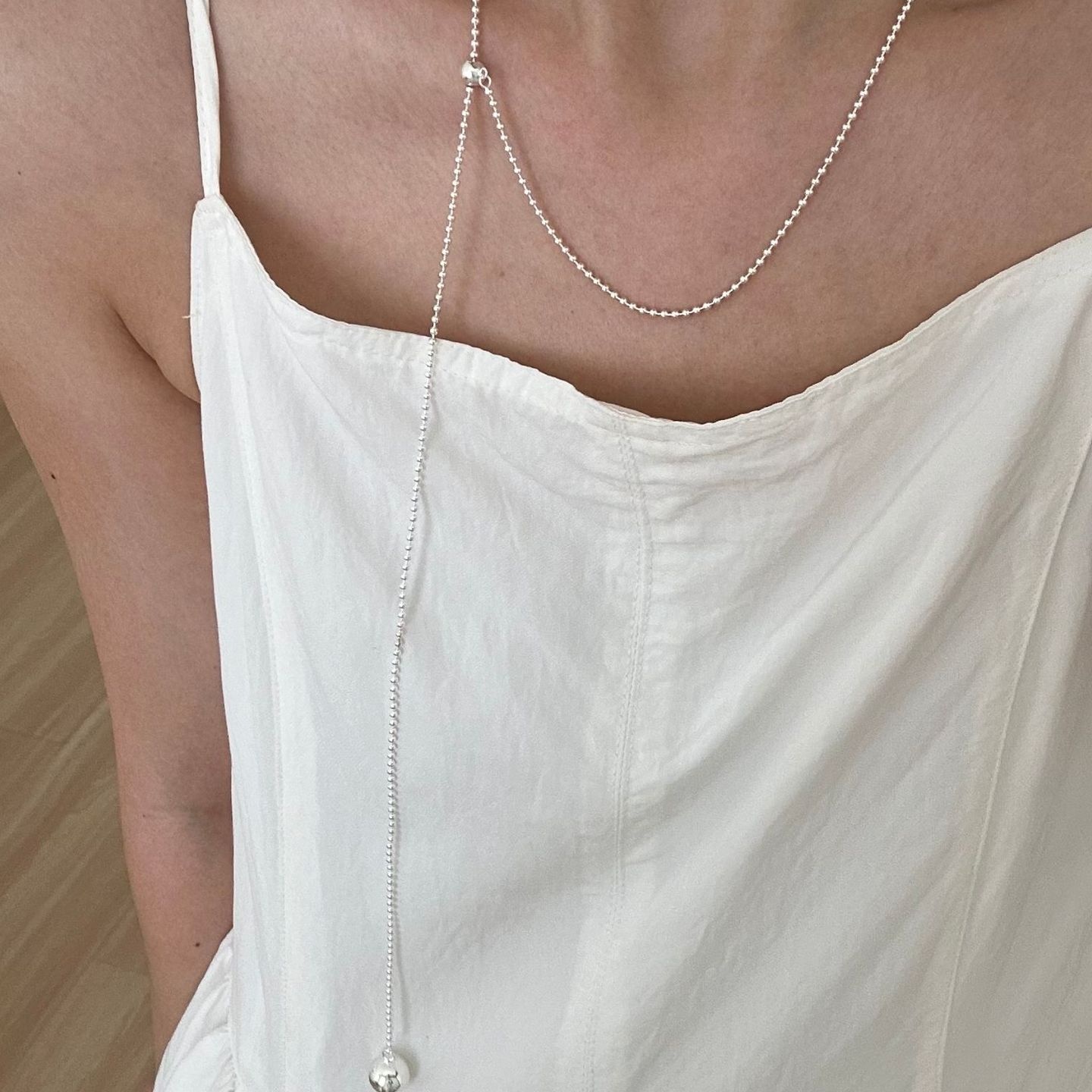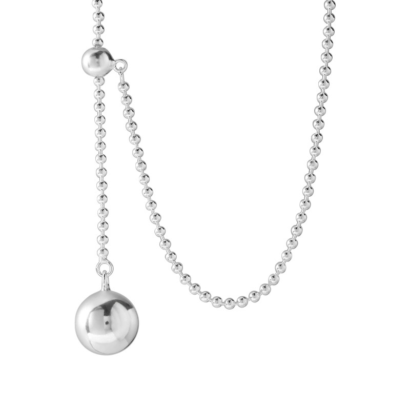 美汝仙 纯银圆珠项链女简约多种佩戴方法长款抽拉式毛衣链秋冬新