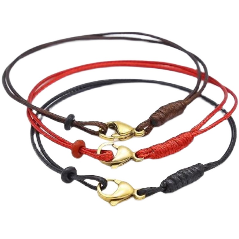 小孔细孔串珠手绳本命年红绳3D硬金转运珠简约细绳男女双股手链绳