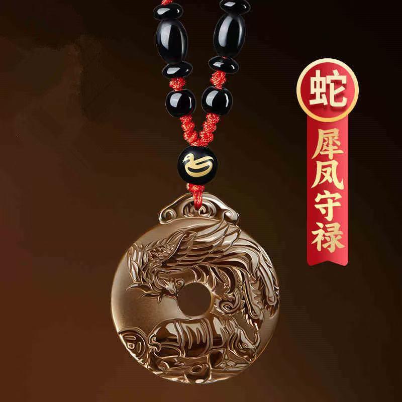 属蛇2025蛇年淘运灵阁犀凤守禄吉宏吊坠黑曜石平安扣本命年吉祥
