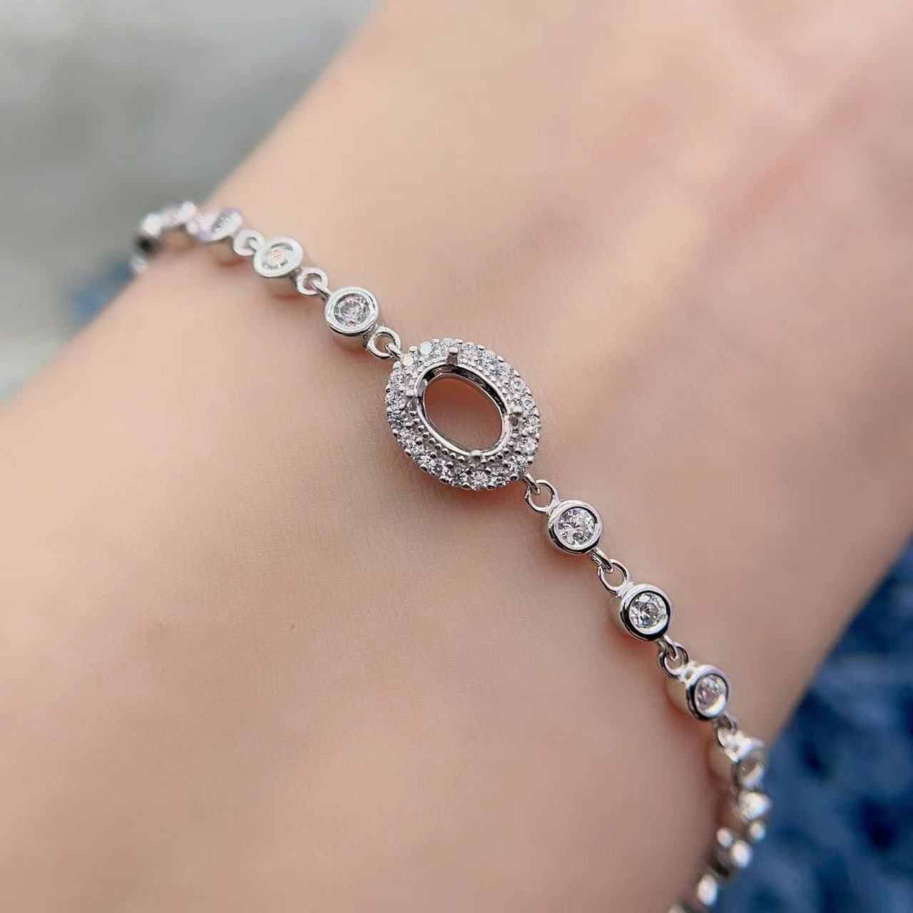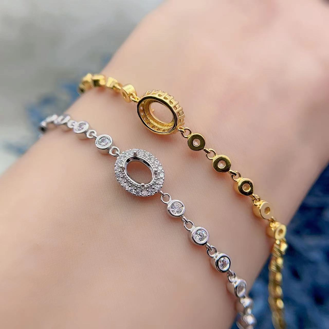 精工手链空托椭圆形5*7mm欧泊葡萄石翡翠彩宝S925纯银镀18k金色托