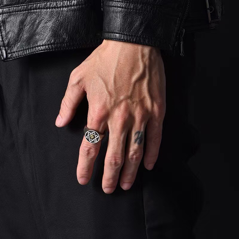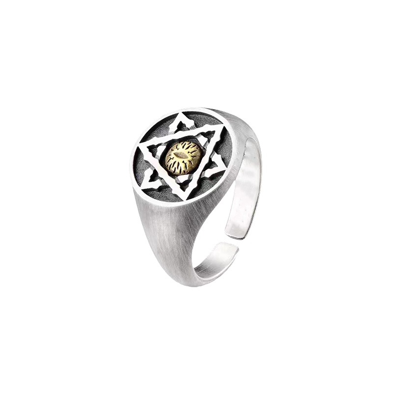 国风潮铜镀银手工饰品恶魔之眼泰银色戒指复古街食指六芒星指环圈