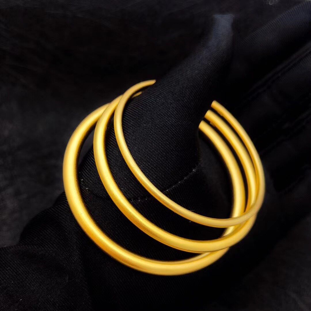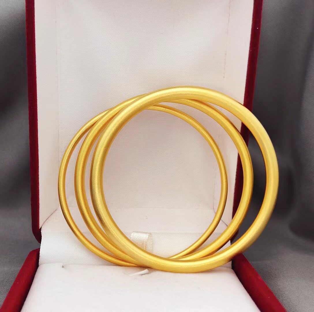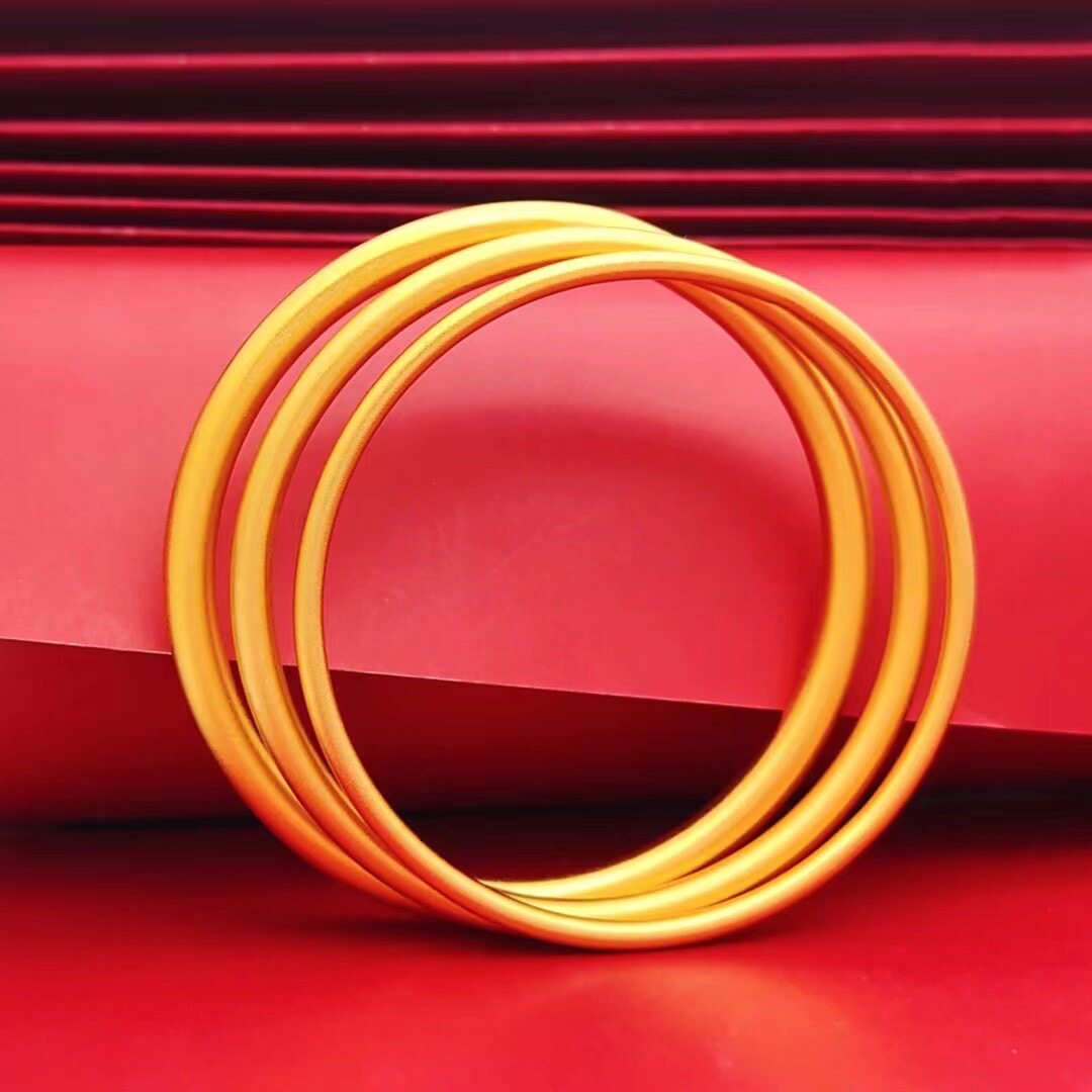 仿黄金金色镯子实心古法沙金传承手镯女久不掉色 镀金素圈手环