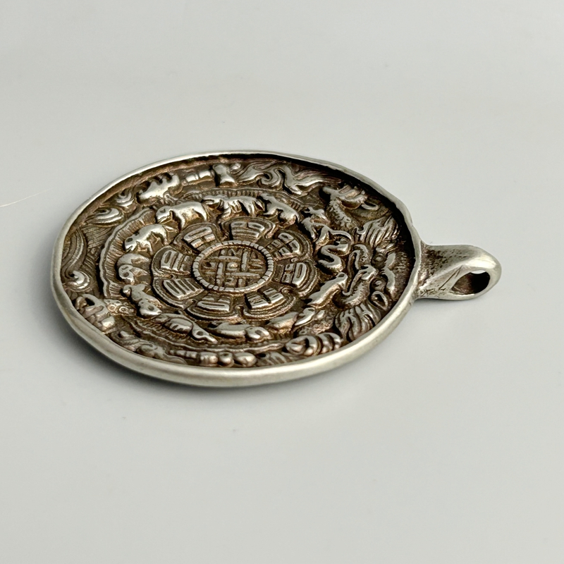 西藏大磨损清晰模版九宫八卦牌藏银吊坠民族风铜镀银九宫佛牌挂饰