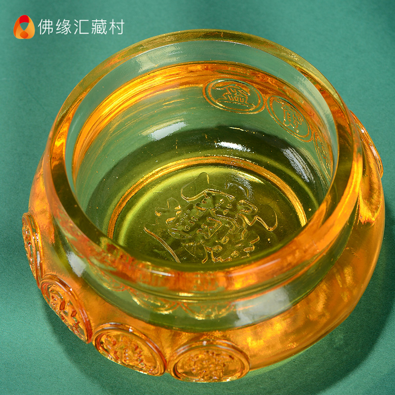 聚宝盆琉璃摆件桌面可装七宝石水晶元宝客厅佛堂五路财神