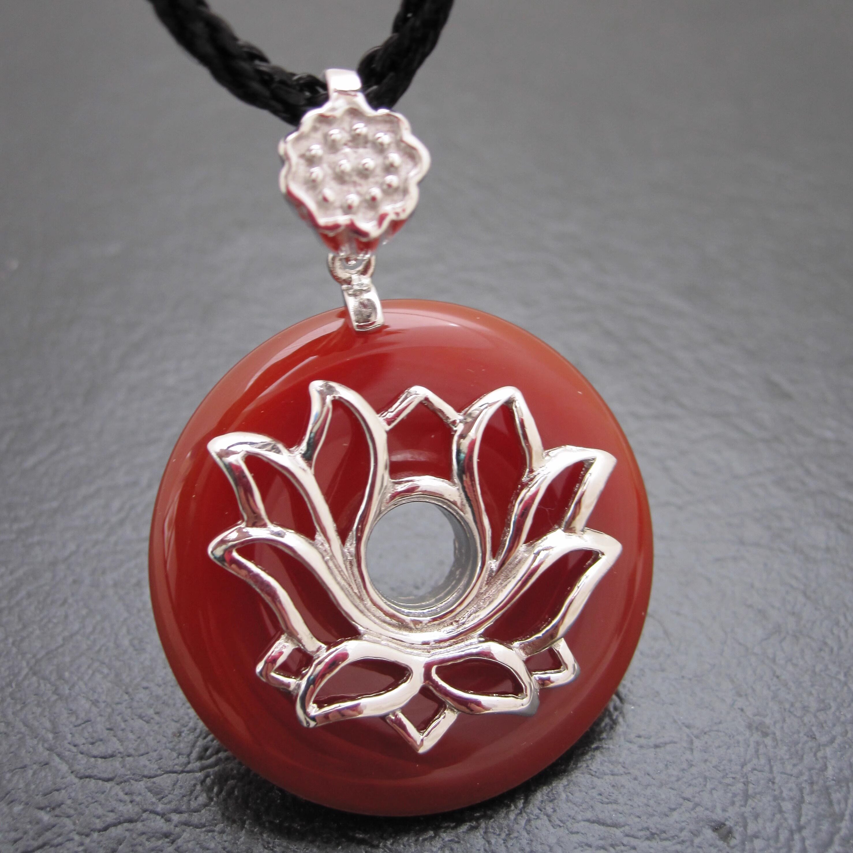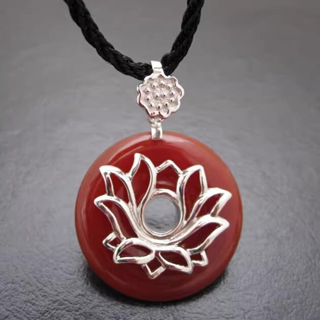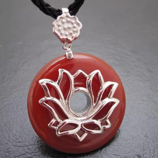 诗美琪本命年礼物925银红玛瑙红色中国红荷塘月色女士项链