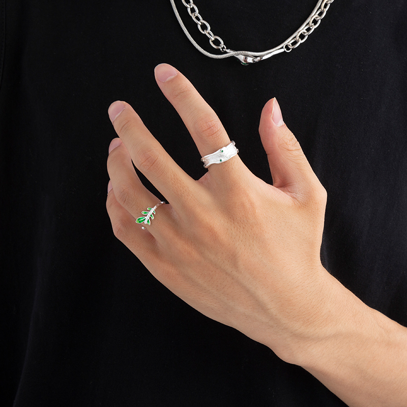 CAIMOU叶子戒指男女小众设计轻奢指环食指戒新款潮欧美风开口戒