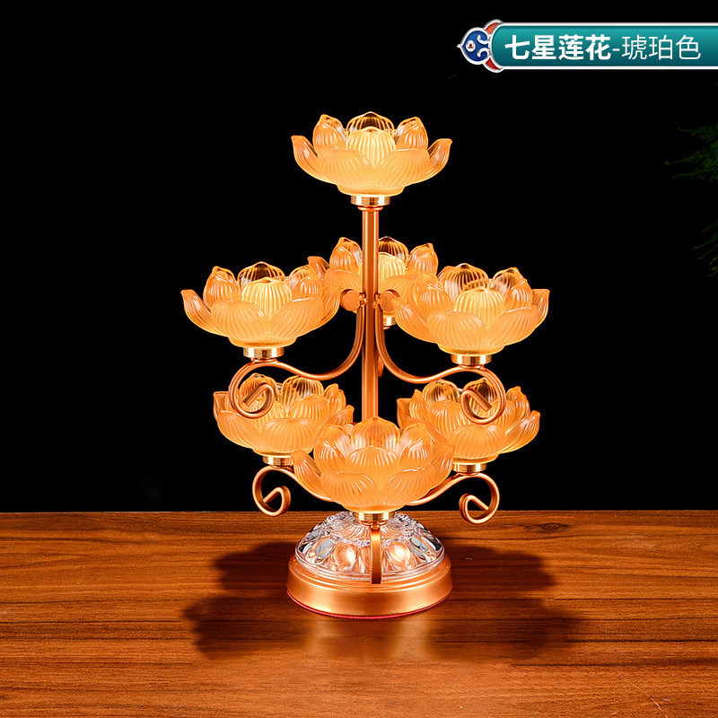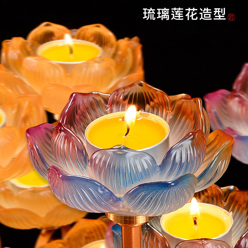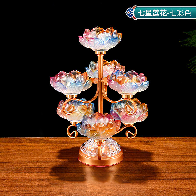 酥油灯座莲花七彩琉璃灯座烛台供佛灯烛台家用七星灯架供佛台摆