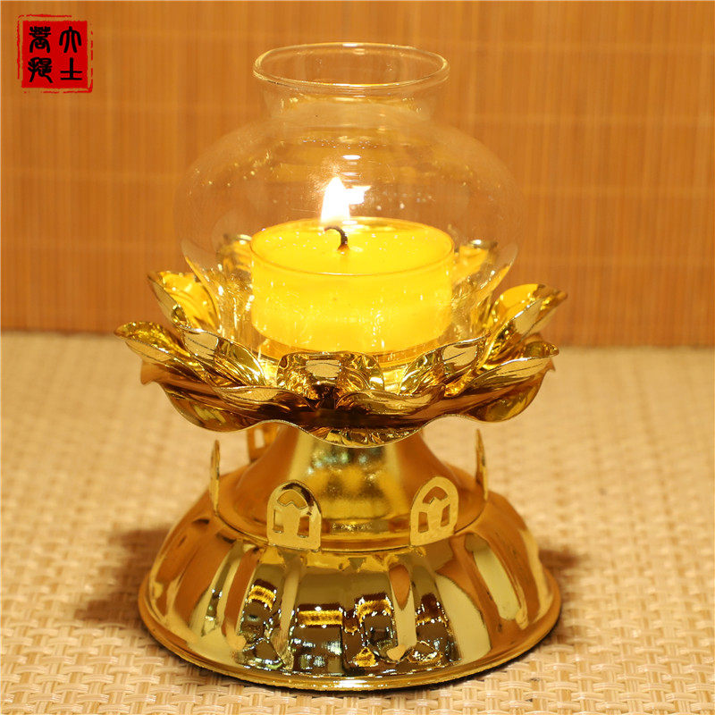 极速合金镀铜莲花酥油灯座 防风佛前佛灯酥O油蜡烛台佛灯灯架底座