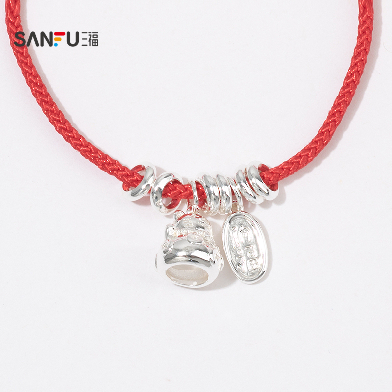 三福中式红绳多配件手链单条 国潮时尚首饰配饰手绳847718