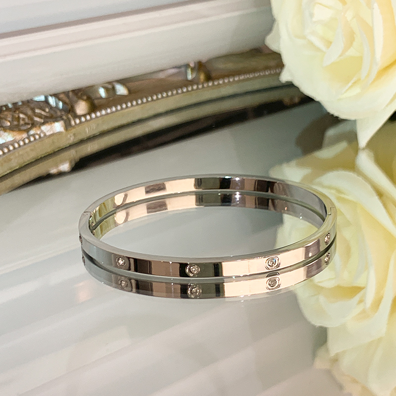 十钻锆石钛钢手镯女高级感素圈手环不锈钢镯子手链手串轻奢手饰品