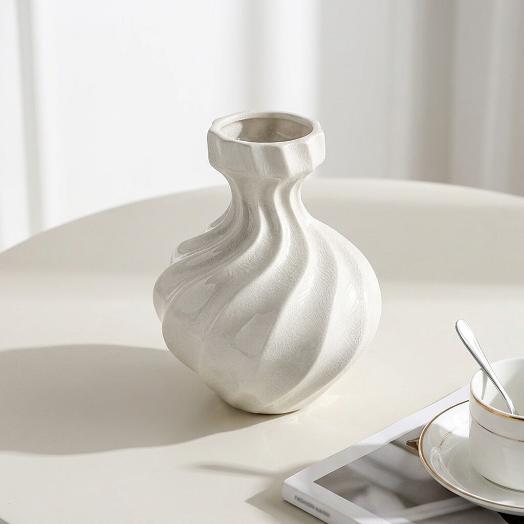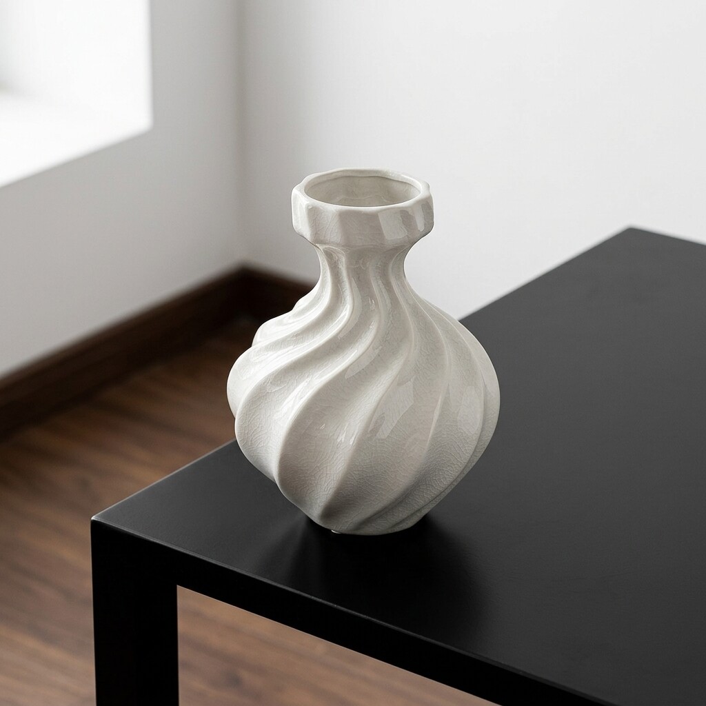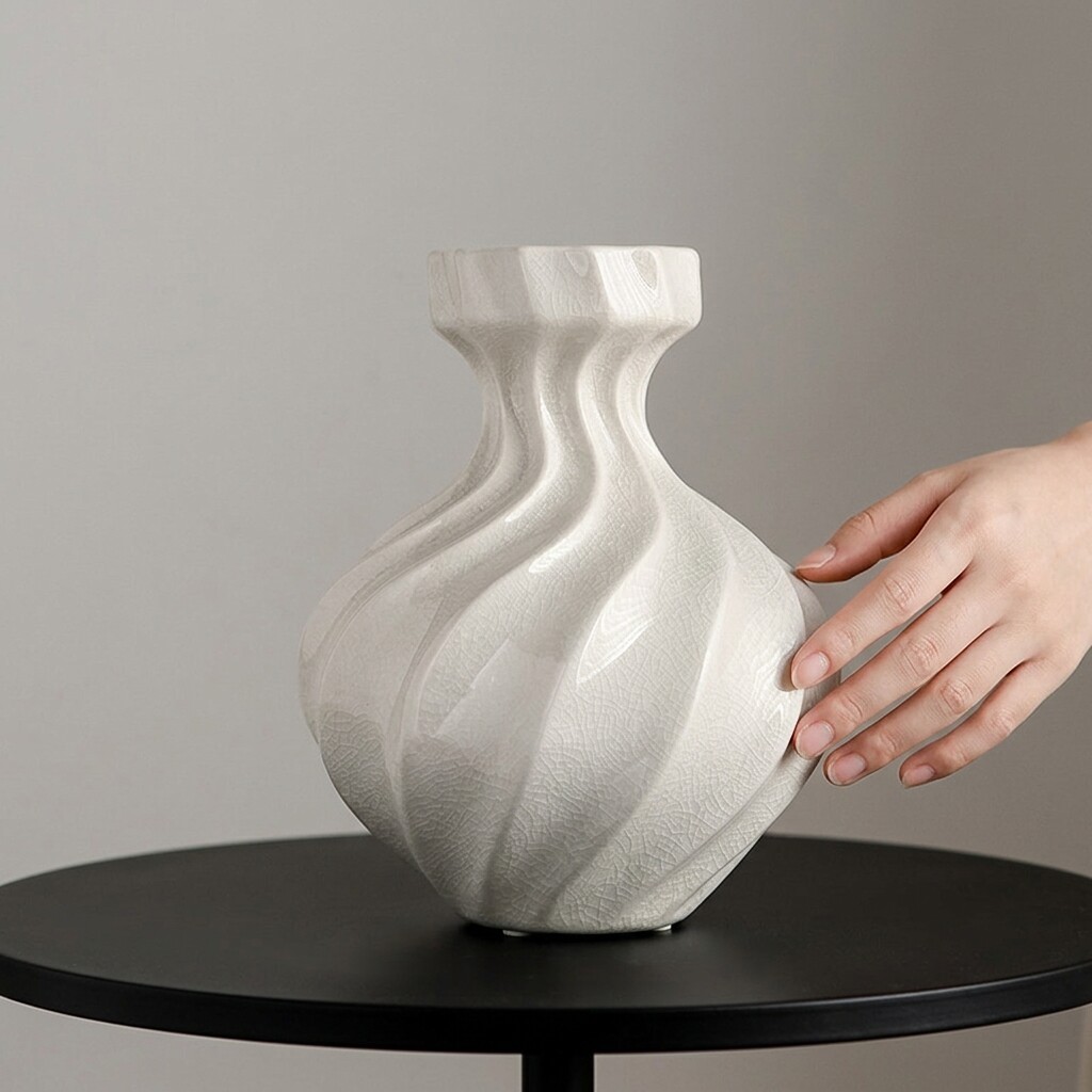 轻奢风白色不规则曲线陶瓷花瓶客厅桌面装饰摆件高级感