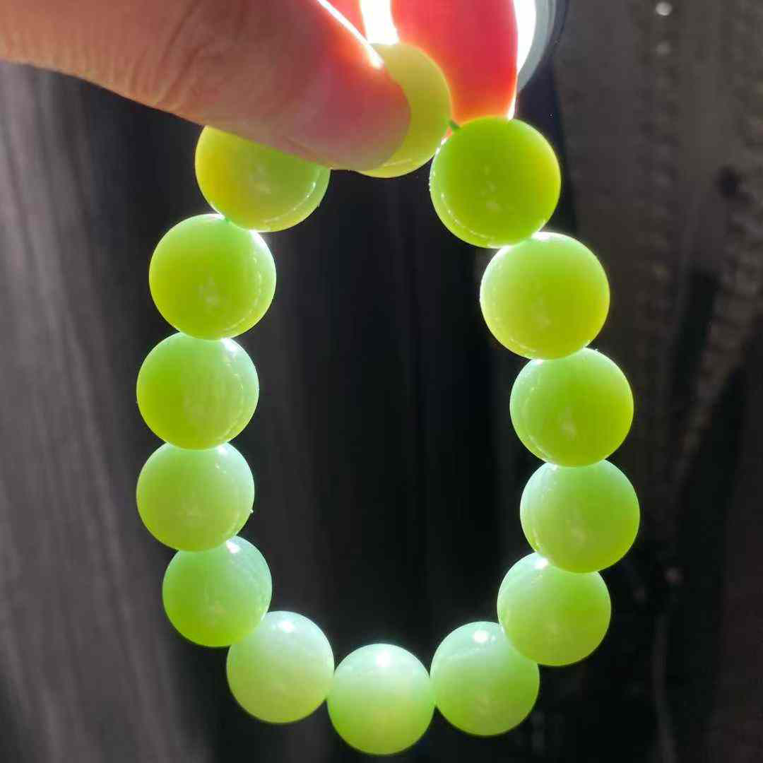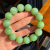 新疆和田玉碧玉手链子男女士款天然菠菜绿色圆珠手串珠无黑点正品