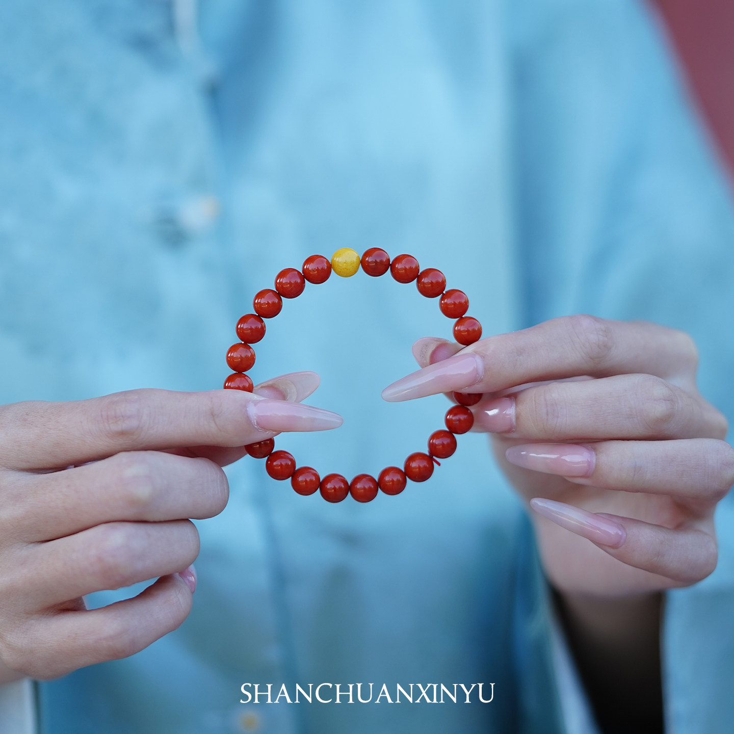 天然保山满肉南红玛瑙蜜蜡珠手串女款新中式国风红色本命年礼物