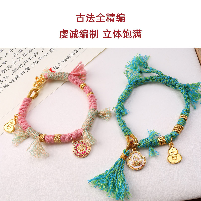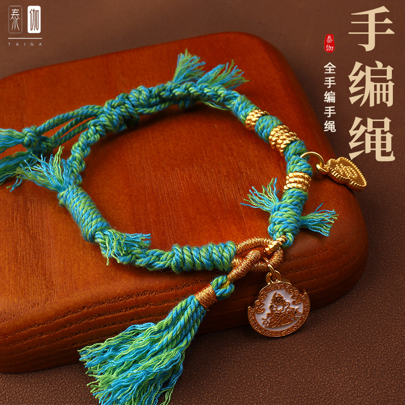 泰伽古法编织手绳纯手工编织手链粉色蓝绿色民族风百搭TG164